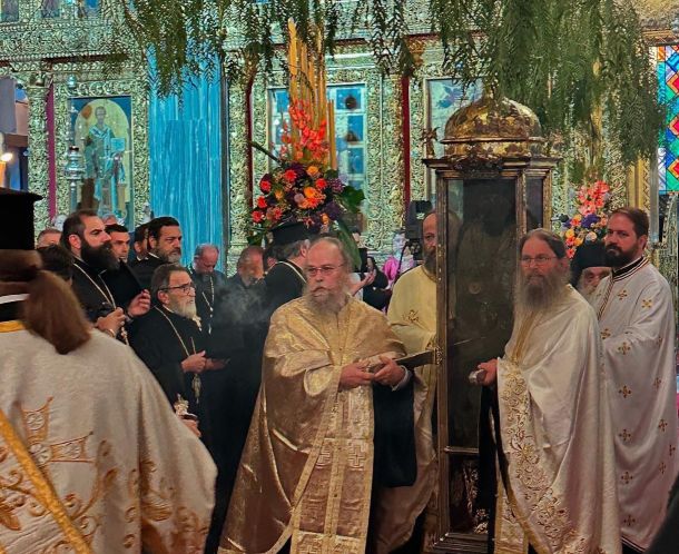 Η Κάθοδος του Μητροπολίτη από την Ιερά Μονή στον Ιερό Ναό - Περιφορά του Σεπτού Σκηνώματος του Αγίου Διονυσίου