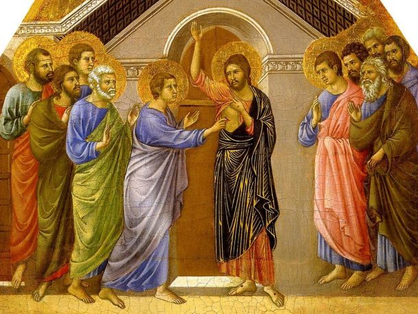 Βαθιά βραδιά σκεπάζει την πόλη, εσπέρα της πρώτης εκείνης ημέρας μετά το Σάββατο, όταν ο χρόνος έμοιαζε με παγωμένη αιωνιότητα. Αυτή η Κυριακή, που ονομάστηκε του Θωμά, φέρνει στο νου μας την αφήγηση του Ευαγγελιστή Ιωάννη, ιστορία που πλέκει μαζί το φόβο και τη χαρά, την αμφιβολία και τη βέβαιη ομολογία. Καὶ τῶν θυρῶν κεκλεισμένω…