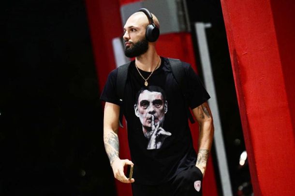 Με t-shirt με την μορφή του Γιώργου Μπαρτζώκα έφτασε στο ΣΕΦ για το παιχνίδι του Ολυμπιακού με τη Βίρτους ο Εβάν Φουρνιέ.