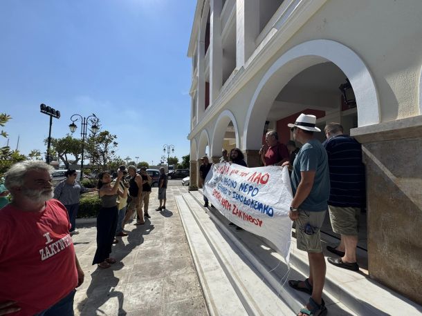 - To Σάββατο 10 Αυγούστου στις 11 το πρωί έξω από το Δημαρχείο Ζακύνθου πραγματοποιήθηκε παράσταση διαμαρτυρίας για το νερό – «Δυναμώνουμε τον αγώνα για φθηνό, ποιοτικό νερό, έργα υποδομής»