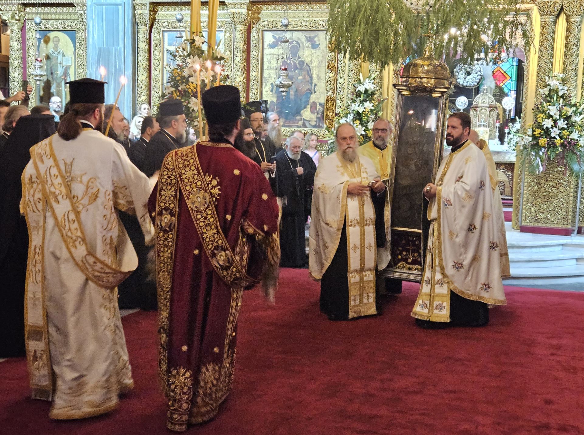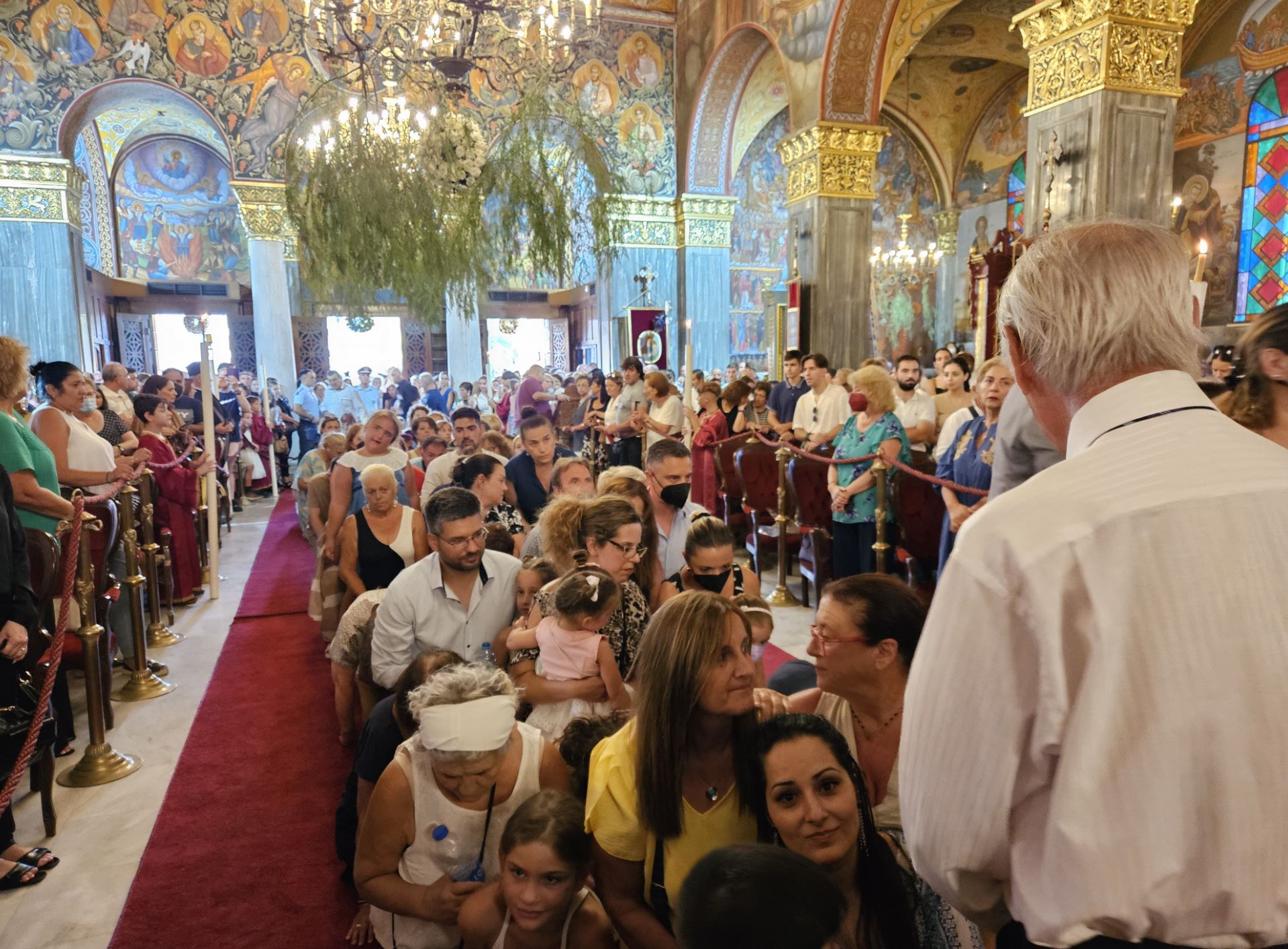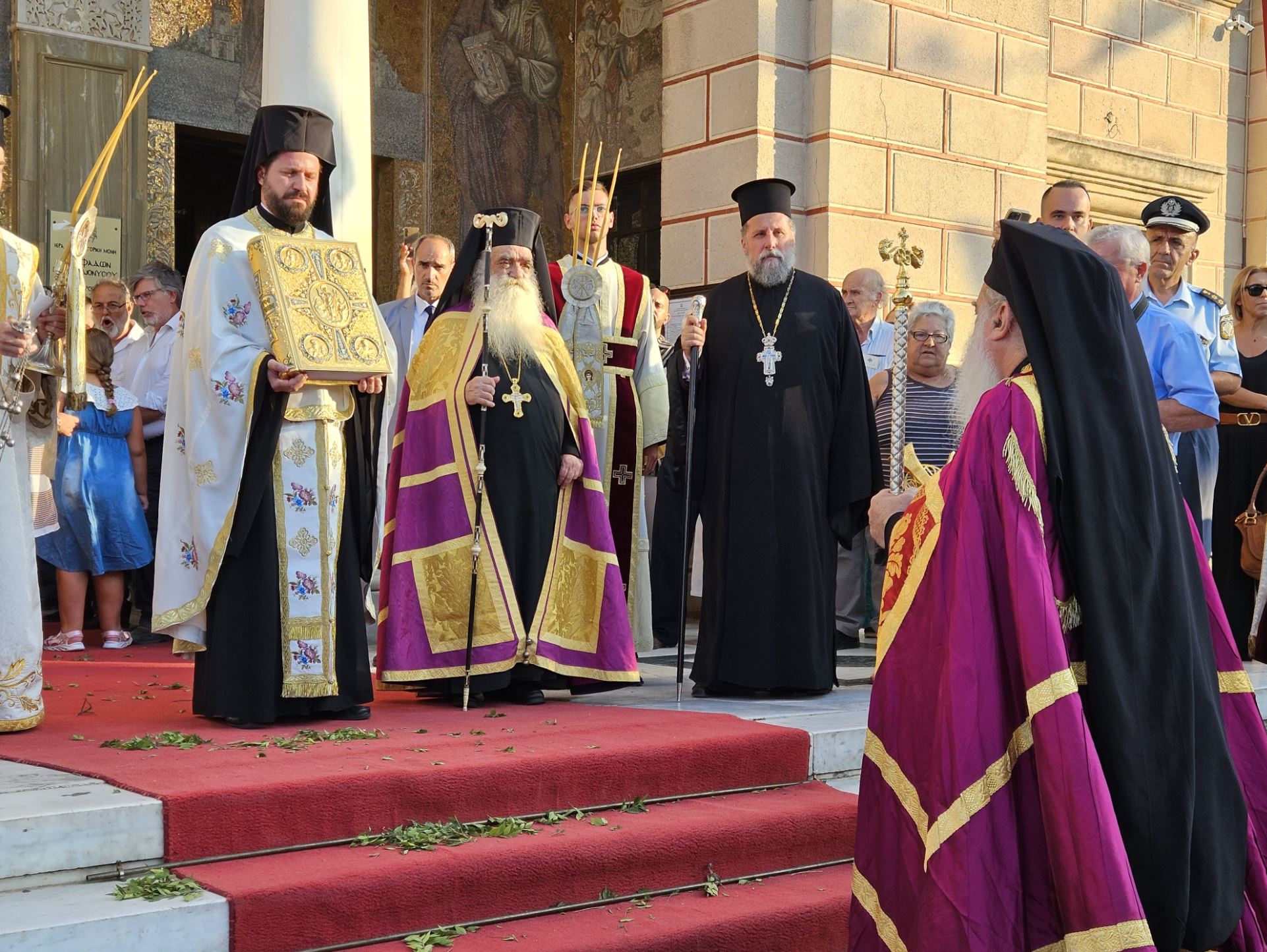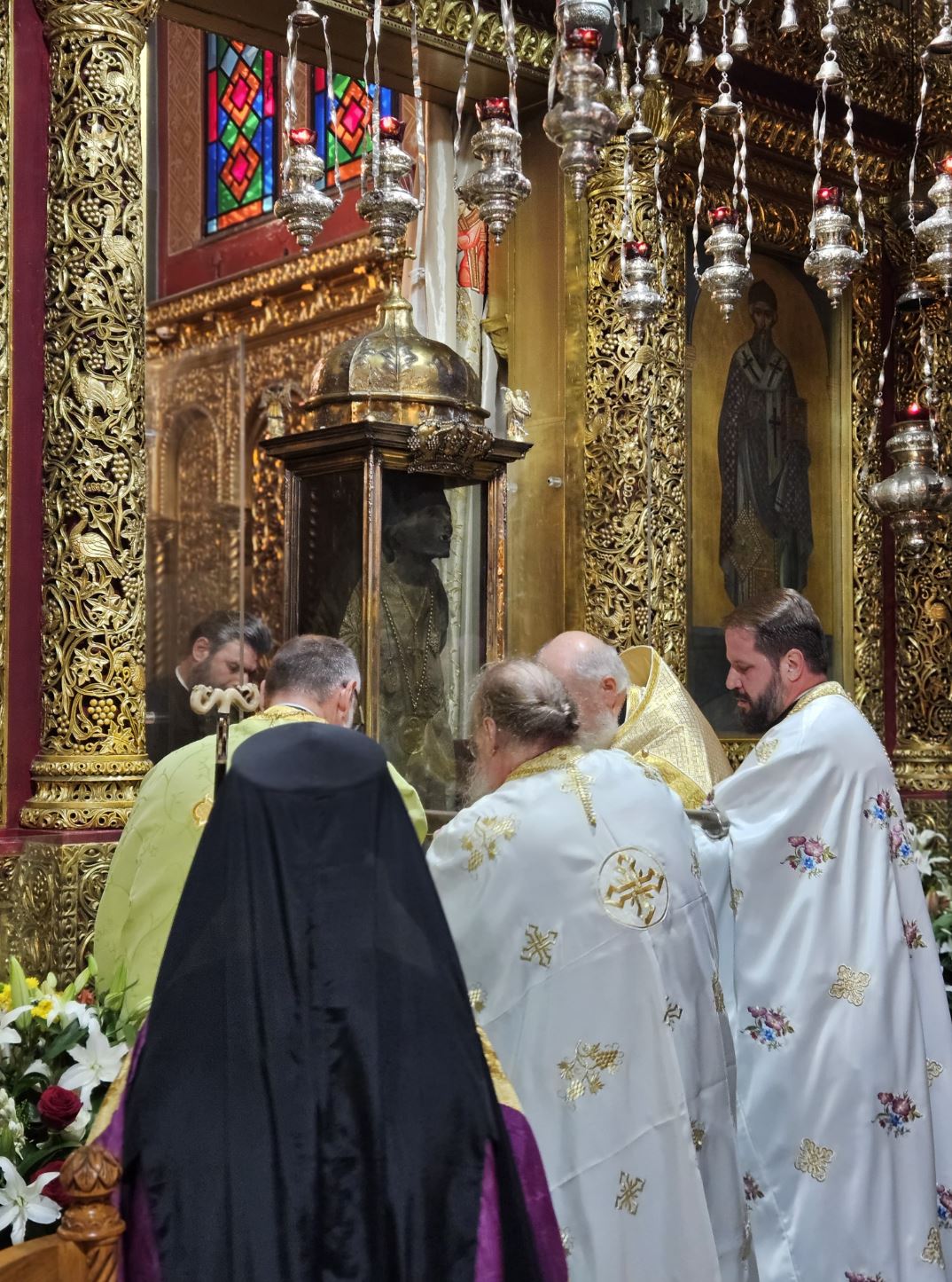 Άμα τη εισόδω στον μεγαλοπρεπή και ανθοστόλιστο Ναό έγινε η καθιερωμένη Λιτή του σεπτού Σκηνώματος τρις, εναπόθεσή Του στη "Θύρα" της προσκυνήσεώς Του και Δέηση.