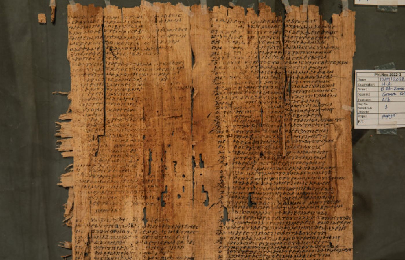 Η ανακάλυψη έγινε κατά τη διάρκεια ανασκαφών στα τέλη του 2022 από μια ομάδα Αιγυπτίων αρχαιολόγων που εργάζονταν στην αρχαία νεκρόπολη Φιλαδέλφεια (της Αιγύπτου), μια τοποθεσία 75 μίλια νοτιοδυτικά του Καΐρου. Ο πάπυρος αποκαλύφθηκε σε λακκοειδείς τάφους του 3ου αιώνα μ.Χ. που συνδέονταν με μια παλαιότερη ταφική δομή.