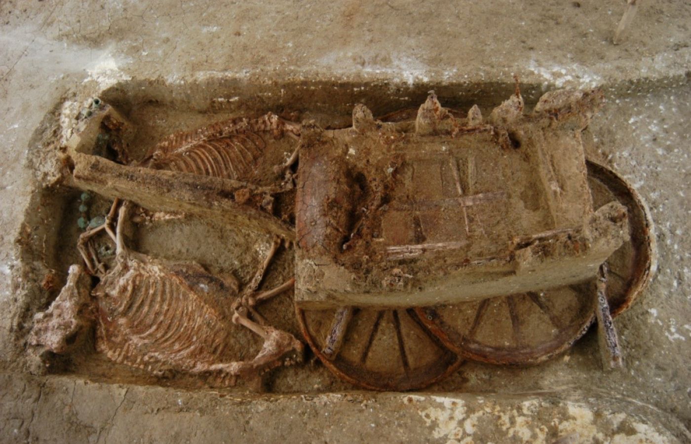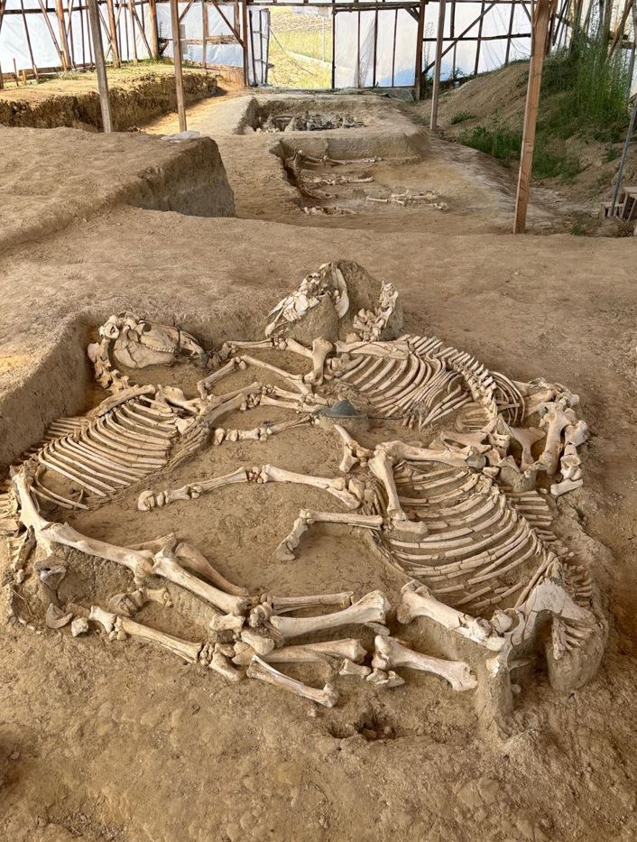 Σημειώνεται ότι στα κινητά ευρήματα της ανασκαφής περιλαμβάνονται πολυάριθμα κτερίσματα, μεταλλικά εξαρτήματα των αμαξών, διακοσμητικά στοιχεία από την ιπποσκευή των αλόγων, αλλά και οργανικά υλικά.