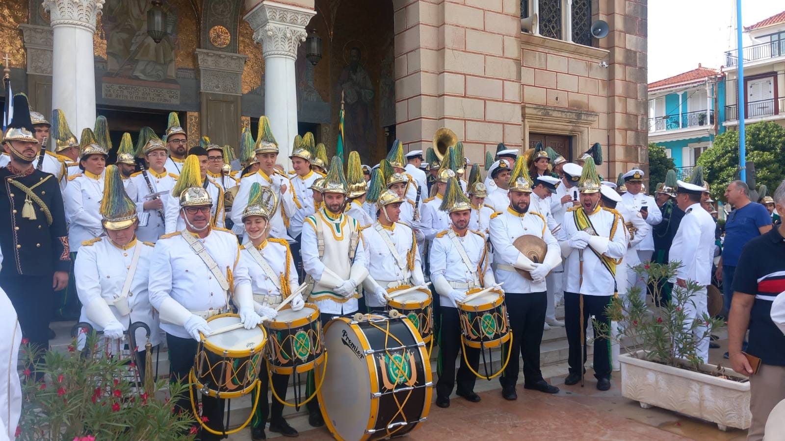 Ανάκρουση Εθνικού Ύμνου έμπροσθεν του Ανδριάντα Διονυσίου Σολωμού από όλες τις Φιλαρμονικές.