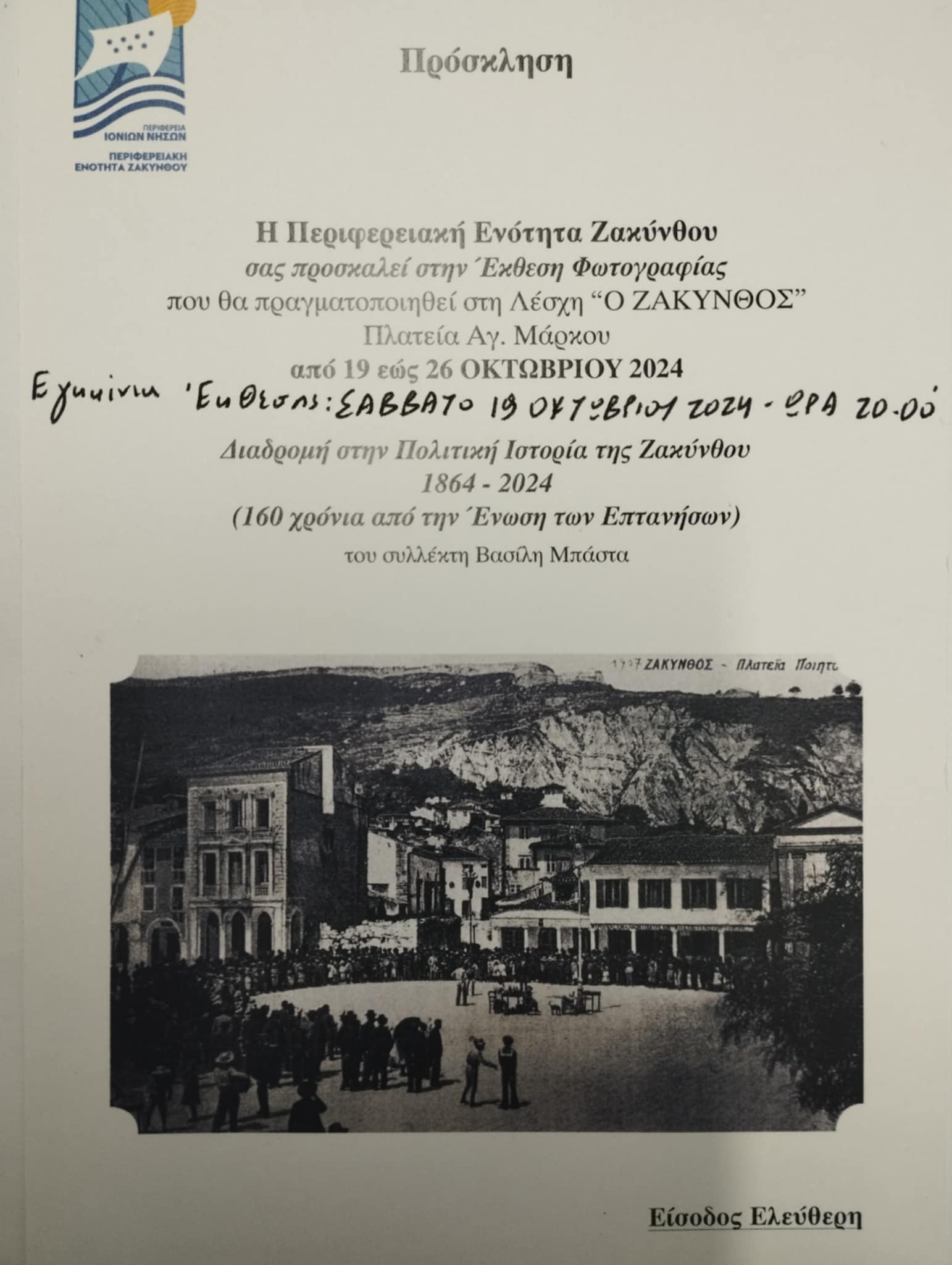 Βασίλης Μπάστας: Έκθεση Φωτογραφίας: «Διαδρομή στην Πολιτιστική Ιστορία της Ζακύνθου 1864-2024»