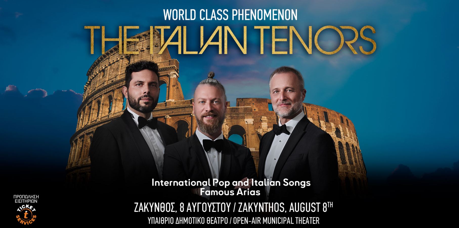 Οι αγαπημένοι του ελληνικού κοινού The Italian Tenors έρχονται για πρώτη φορά στη Ζάκυνθο για μία και μοναδική καλοκαιρινή εμφάνιση, που θα πραγματοποιηθεί στις 8 Αυγούστου στο Υπαίθριο Δημοτικό Θέατρο Ζακύνθου. Μια μαγευτική βραδιά κάτω από το φως της Πανσελήνου, γεμάτη συγκίνηση, πάθος και μουσική που θα μας ταξιδέψει από την καρδιά της Ιταλίας μέχρι τις πιο διάσημες σκηνές του κόσμου.