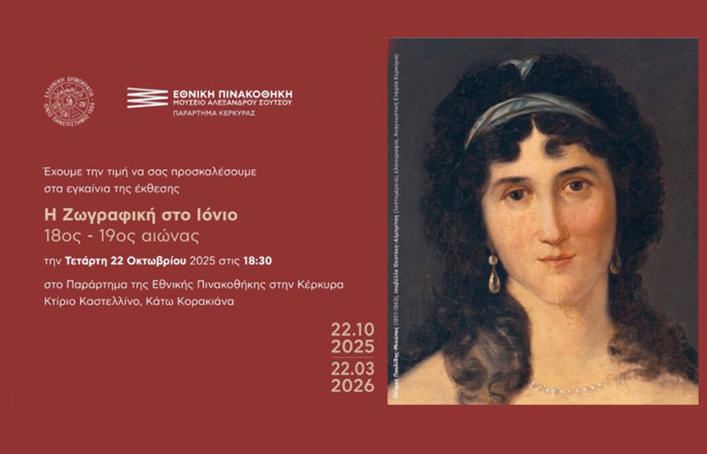 Εγκαίνια της Έκθεσης «Η Ζωγραφική στο Ιόνιο - 18ος-19ος αιώνας» - Τετάρτη 22 Οκτωβρίου 2025 στις 18:30 - Παράρτημα Εθνικής Πινακοθήκης στην Κέρκυρα, Κτίριο Καστελλίνο, Κάτω Κορακιάνα