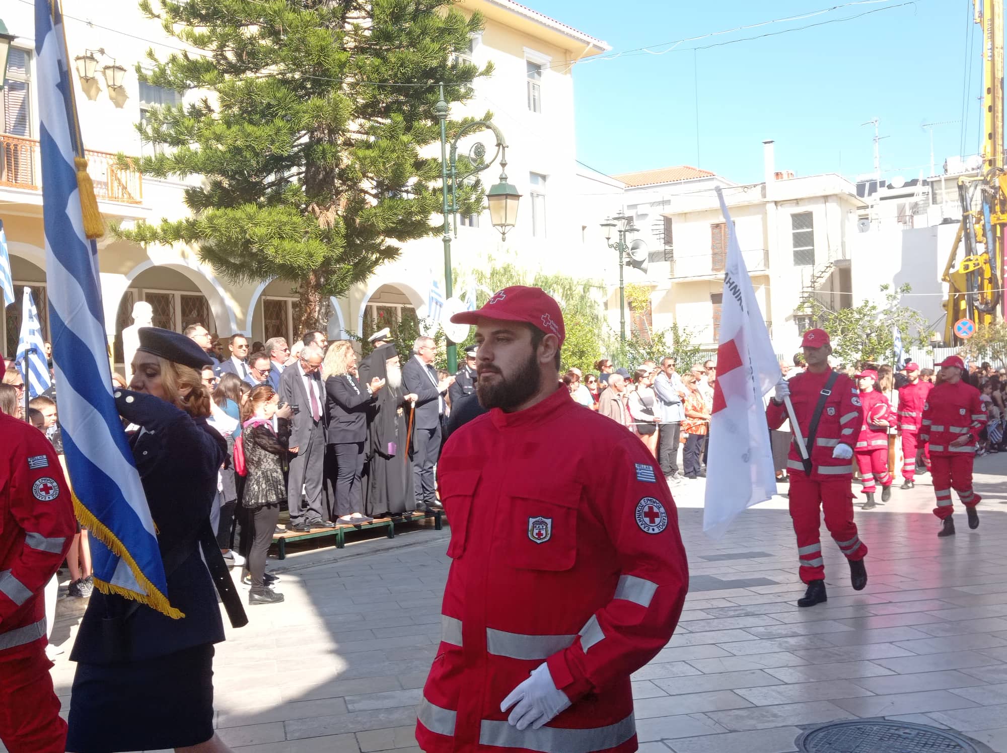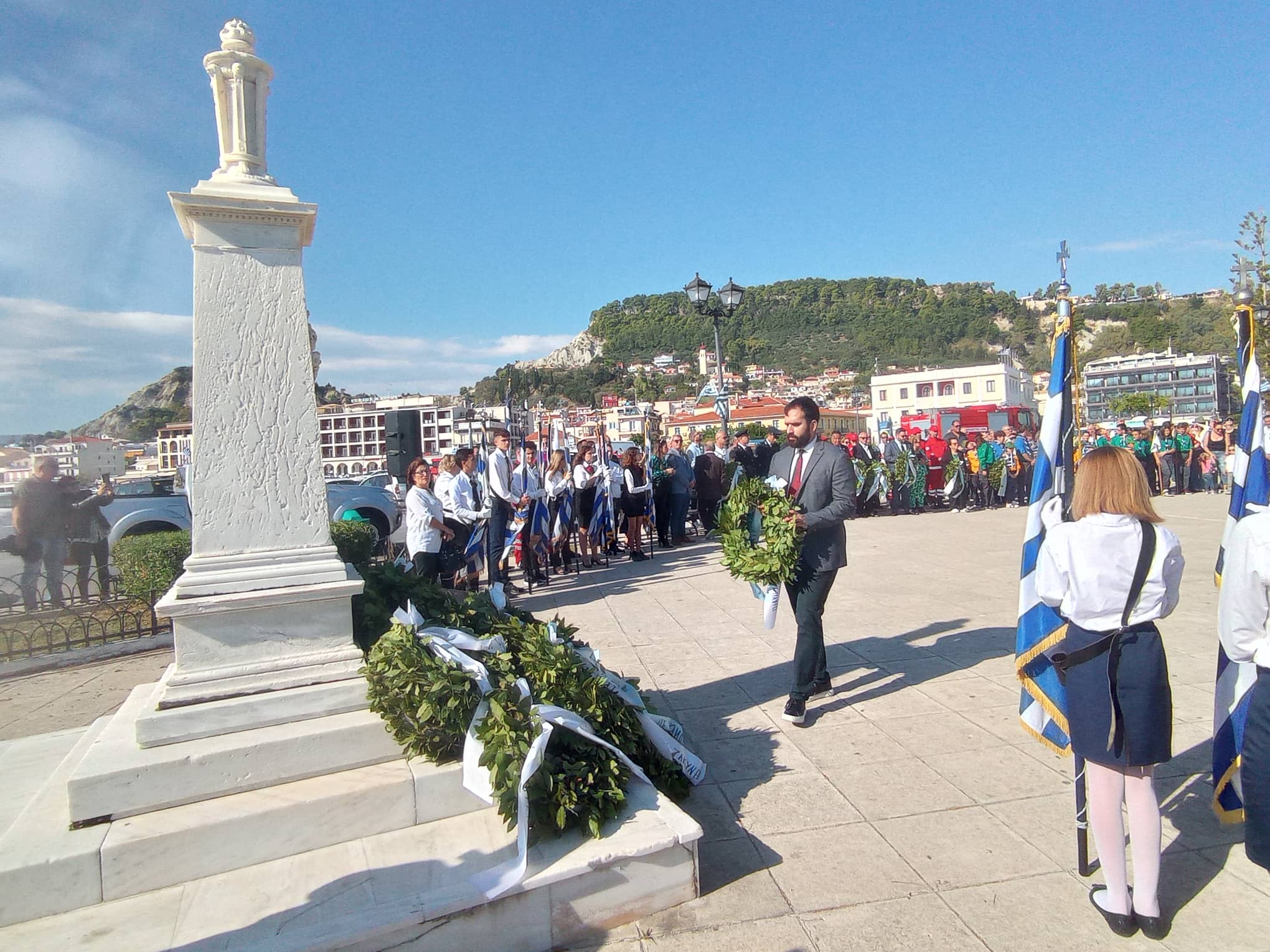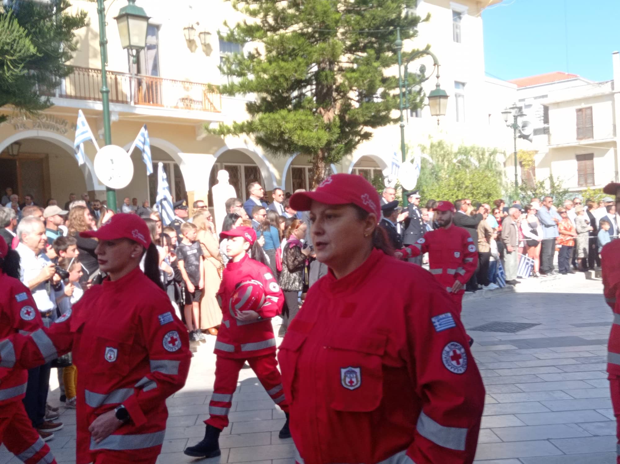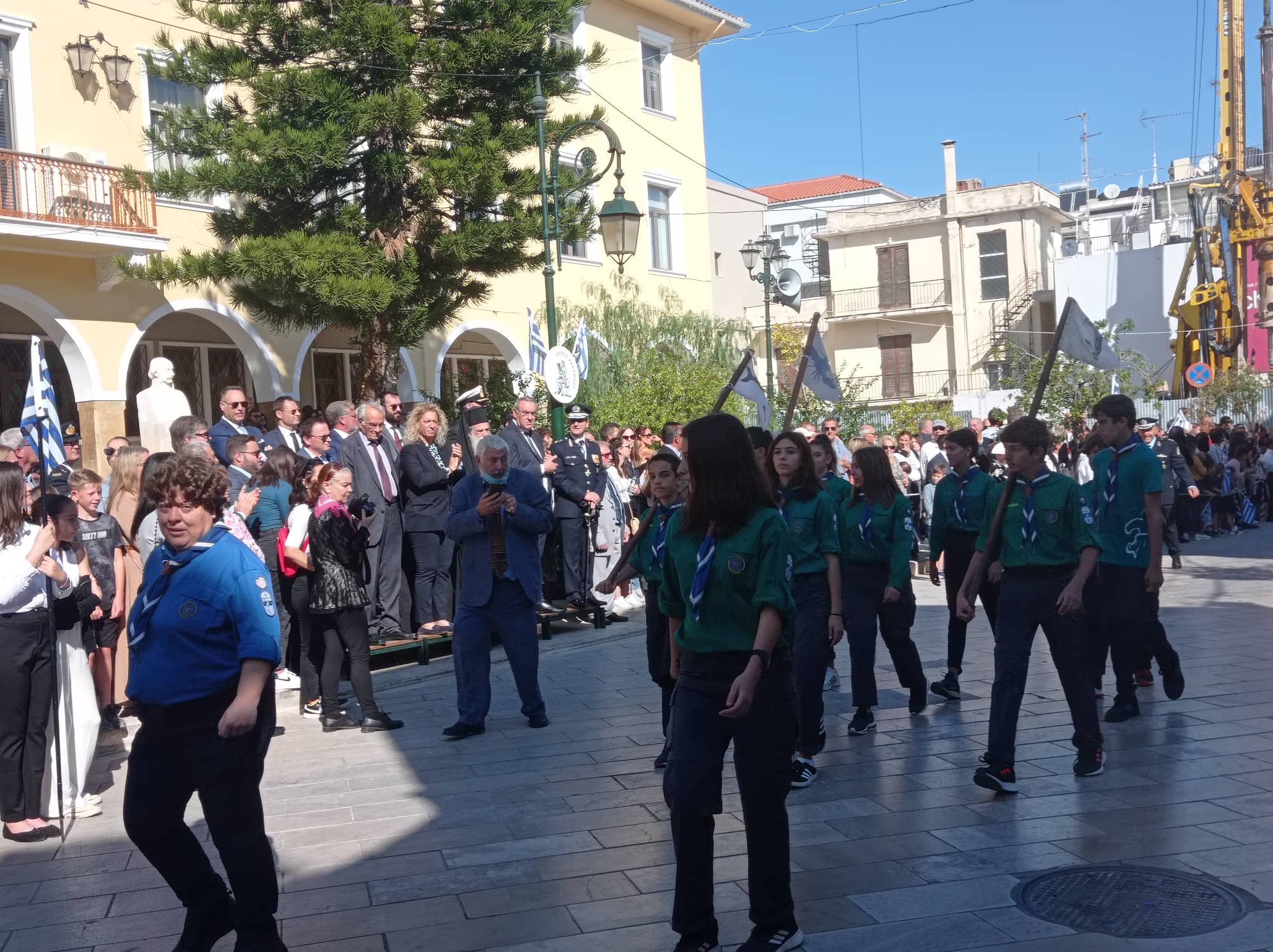 Η παρέλαση των σχολείων της Α΄βάθμιας και Β΄βάθμιας εκπαίδευσης και των σωμάτων Ελληνικού Οδηγισμού και Ελλήνων Προσκόπων μπροστά από το Μέγαρο της Π.Ε. Ζακύνθου