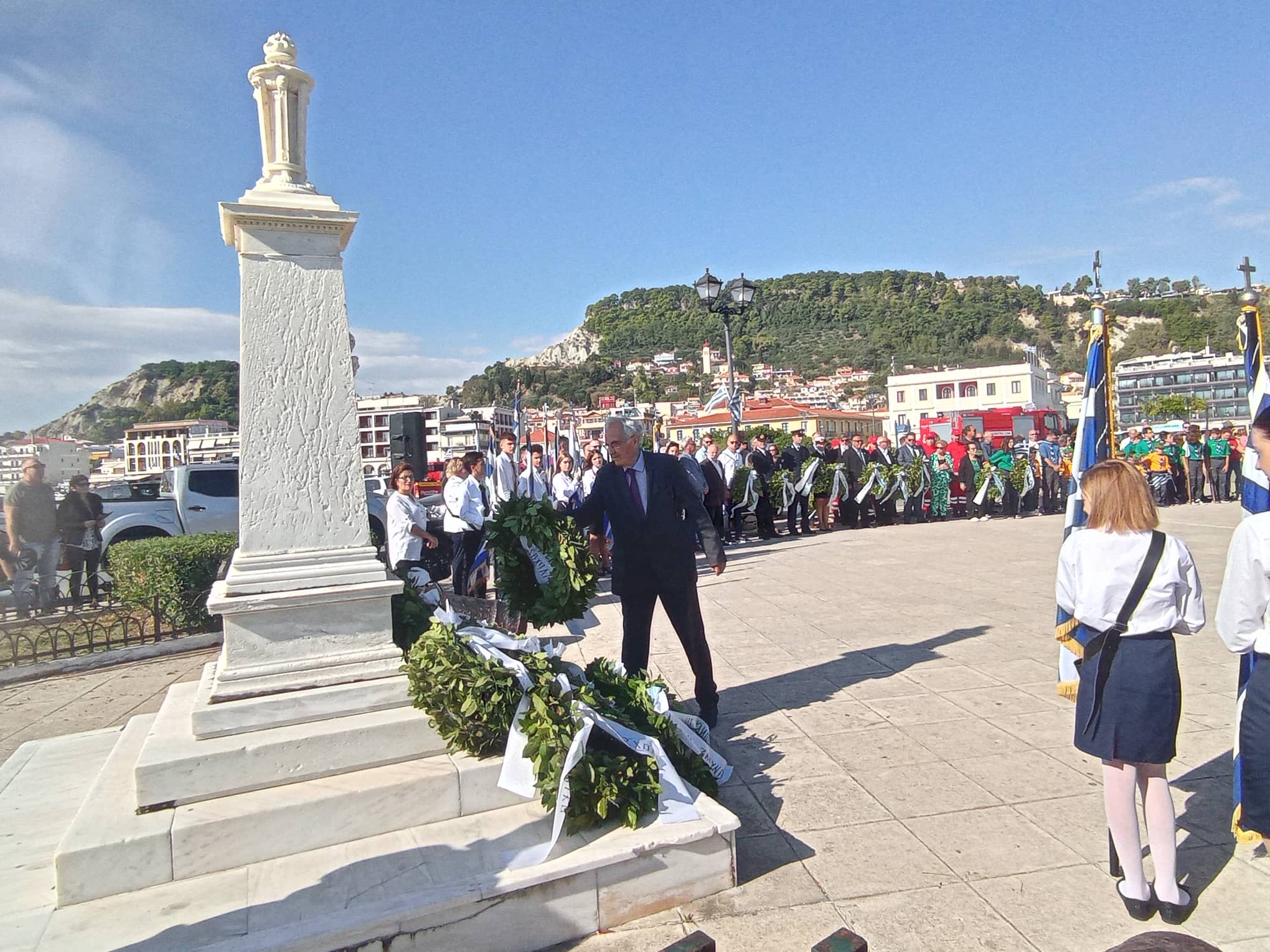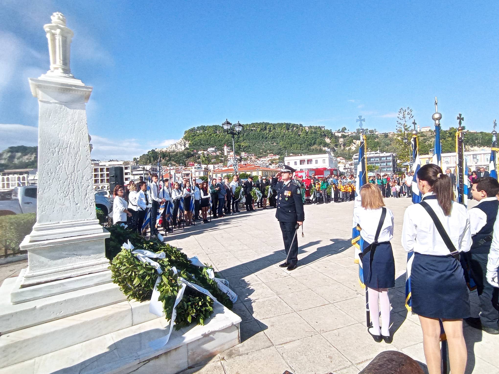 Με εξαιρετικό καιρό και παρουσία χιλιάδων πολιτών πραγματοποιήθηκε η καθιερωμένη μαθητική παρέλαση της 28η Οκτωβρίου στη Ζάκυνθο , μπροστά από το Μέγαρο της Π.Ε. Ζακύνθου