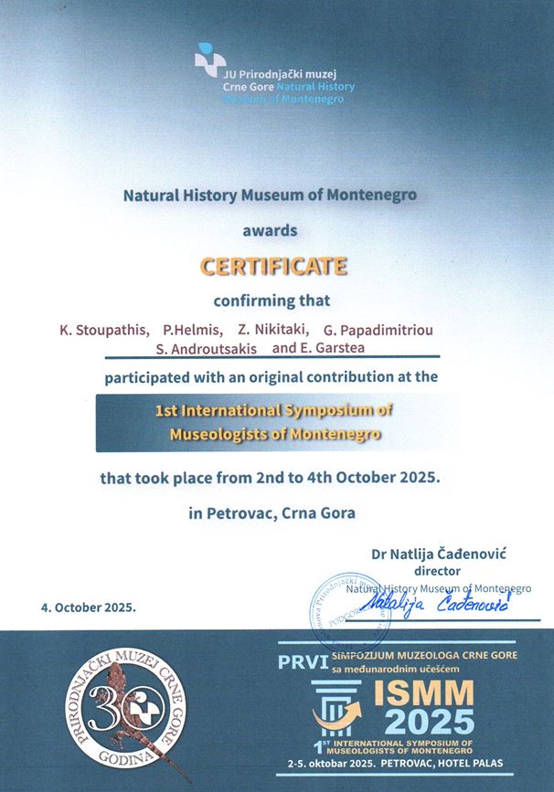 Με μεγάλο ενδιαφέρον και θερμή ανταπόκριση αγκάλιασε η επιστημονική κοινότητα των Μουσειολόγων την πρόσφατη συμμετοχή του Μουσείου Φυσικής Ιστορίας Χέλμη στο Μαυροβούνιο.