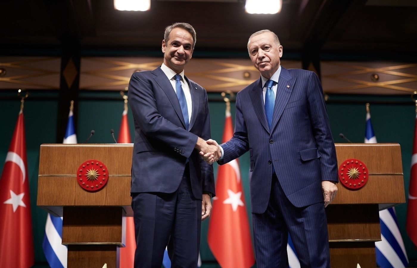 Ο Πρόεδρος της Δημοκρατίας της Τουρκίας κ. Ρετζέπ Ταγίπ Ερντογάν και ο Πρωθυπουργός της Ελληνικής Δημοκρατίας κ. Κυριάκος Μητσοτάκης συναντήθηκαν στις 13 Μαΐου στην Άγκυρα, σε πνεύμα καλής θέλησης και συνεργασίας, αναφέρεται σε κοινή δήλωση που εξέδωσαν η Αθήνα και η Άγκυρα.
