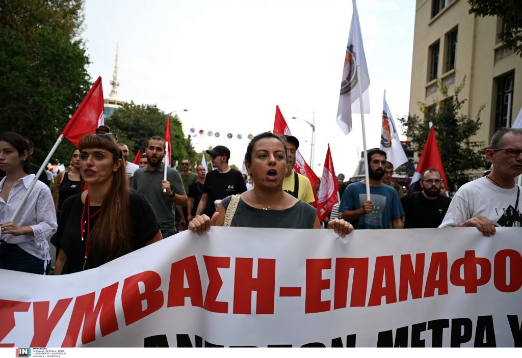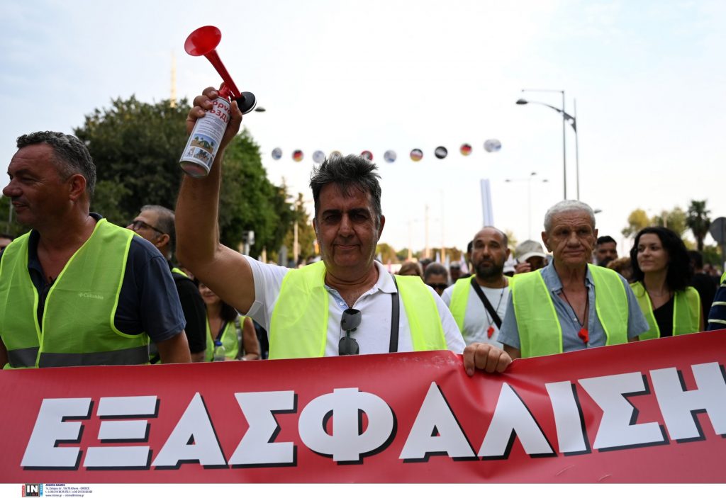 Αξιοπρεπείς μισθούς και συντάξεις και συμβάσεις εργασίας για όλους ζητούν τα σωματεία που διαδηλώνουν στη Θεσσαλονίκη, ενώ ξεκινάει η ομιλία του πρωθυπουργού στη ΔΕΘ. Φωτογραφίες από τις διαδηλώσεις