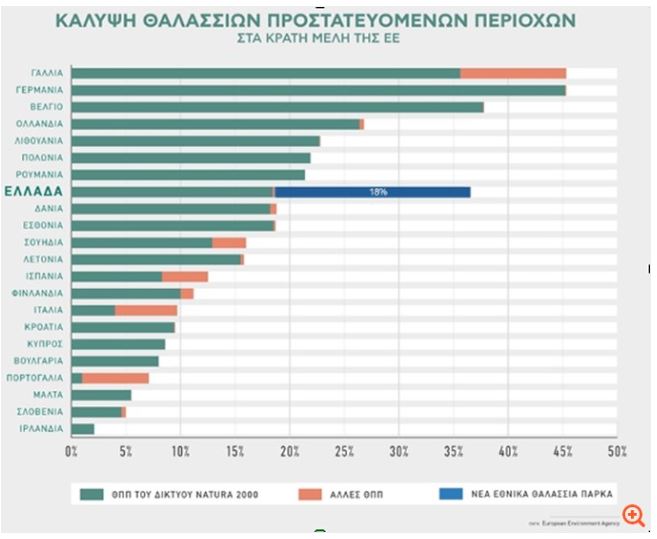 Συνολική κάλυψη των Θαλάσσιων Προστατευόμενων περιοχών στα Κράτη Μέλη της ΕΕ