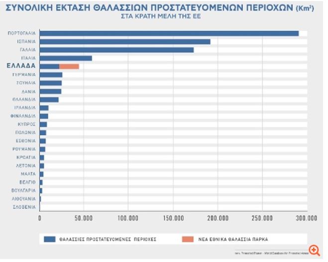 Με τα 2 θαλάσσια πάρκα αυξάνεται η προστασία στο 36,2% των χωρικών υδάτων και εκπληρώνεται, με αυτόν τον τρόπο, η δέσμευση της χώρας μας για τη διεύρυνση του δικτύου θαλάσσιων προστατευμένων περιοχών, στο πλαίσιο της πρωτοβουλίας 30x30.