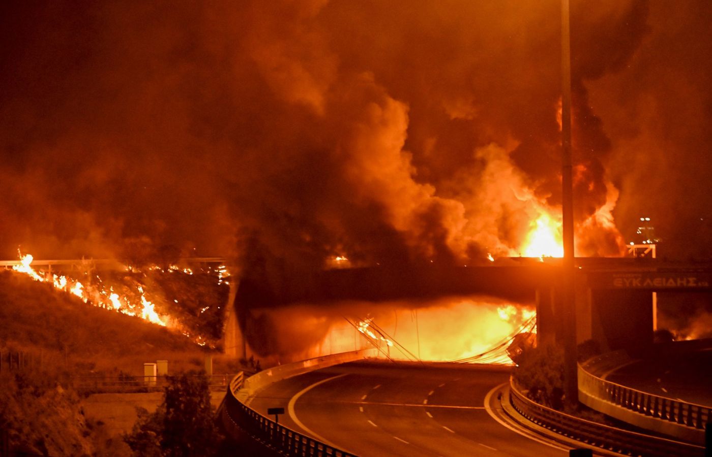 Βυτιοφόρο γεμάτο καύσιμα εξερράγη στη γέφυρα του Ισθμού στην Κόρινθο μετά από τροχαίο με ανατροπή.