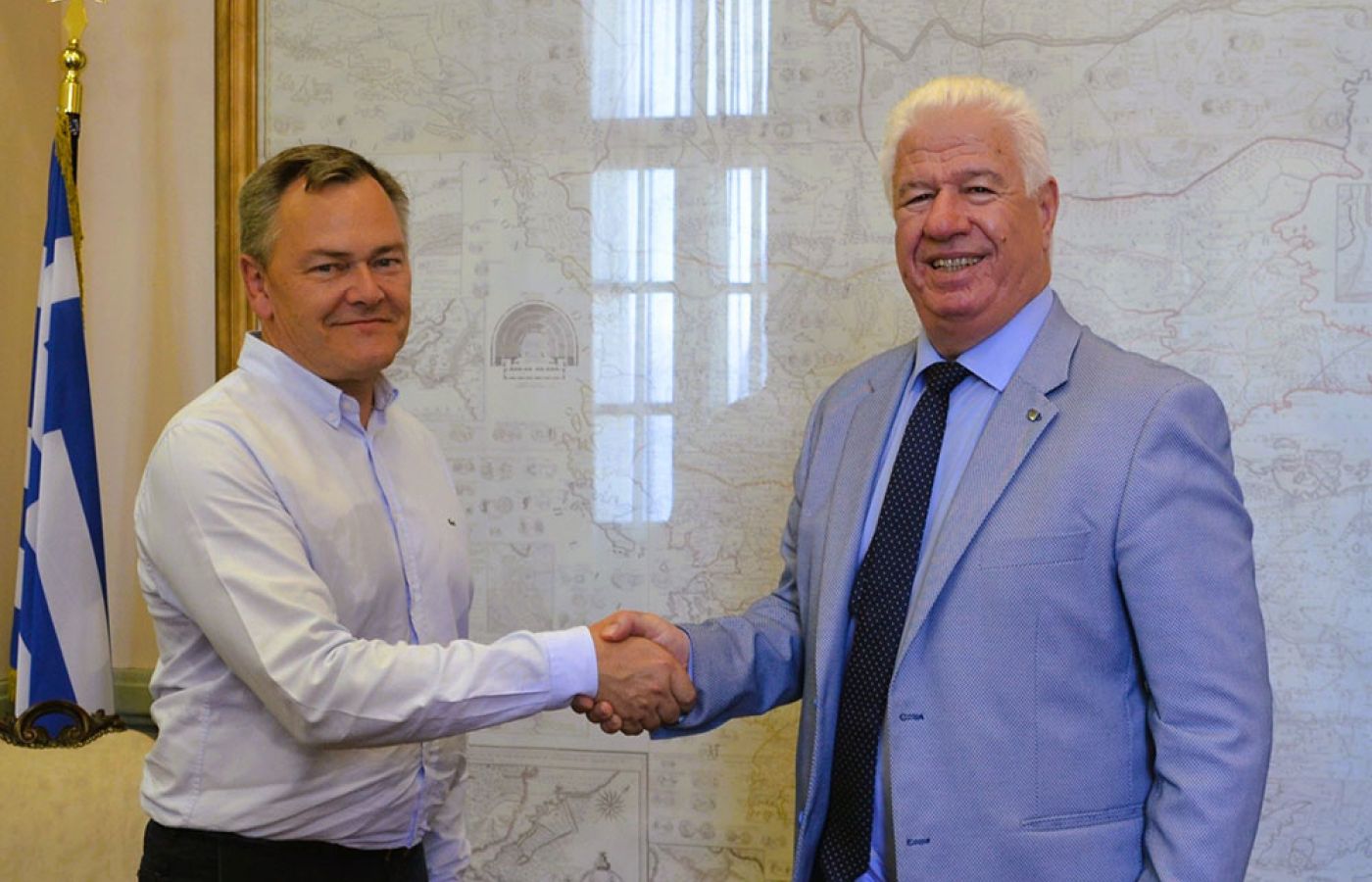 Ο Πρέσβης της Δανίας κ. Per Fabricius Andersen επισκέφθηκε εθιμοτυπικά στο γραφείο του στην έδρα της Περιφέρειας τον Περιφερειάρχη κ. Γιάννη Τρεπεκλή, όπου κατά τη διάρκεια της συζήτησης, η οποία έγινε σε εγκάρδιο κλίμα συζητήθηκαν θέματα κοινού ενδιαφέροντος και αντάλλαξαν εποικοδομητικές απόψεις για διάφορα θέματα.