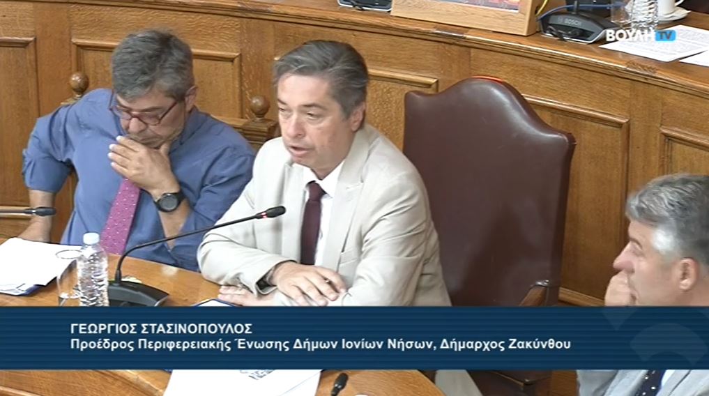 Στις εργασίες της Επιτροπής προσκλήθηκε και συμμετείχε ο Πρόεδρος της Περιφερειακής Ένωσης Δήμων Ιονίων Νήσων και Δήμαρχος Ζακύνθου Γιώργος Στασινόπουλος επισημαίνοντας χαρακτηριστικά ότι “ως νησιωτική Περιφέρεια και άκρως τουριστική, το ζήτημα αυτό μας επηρεάζει άμεσα και ποικιλοτρόπως. Δεν είναι μόνο η σοβαρή περιβαλλοντολογική διάσταση του θέματος, αλλά είναι και η απώλεια περιουσιών και σημαντικών στοιχείων του τουριστικού μας προϊόντος.