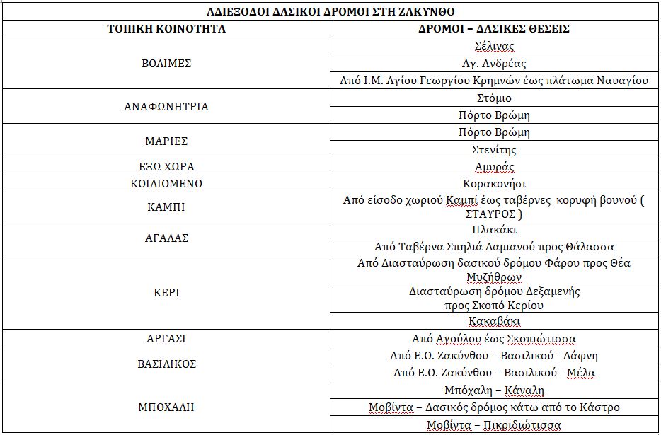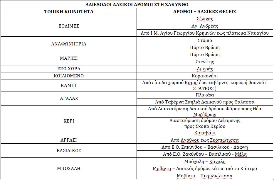 Επιβάλλουμε το μέτρο της απαγόρευσης διέλευσης, παραμονής και κυκλοφορίας προσώπων και οχημάτων σε περιοχές NATURA, καθώς και σε δασικά οικοσυστήματα, πάρκα και άλση, στην Περιφερειακή Ενότητα Ζακύνθου το χρονικό διάστημα από Ω/7.30 πμ της 23/06/2024 έως 7.30 πμ. της 24/06/2024 στους δασικούς δρόμους , περιοχές NATURA, δασικά οικοσυστήματα πάρκα και άλση των κάτωθι Δημοτικών και Τοπικών Κοινοτήτων :