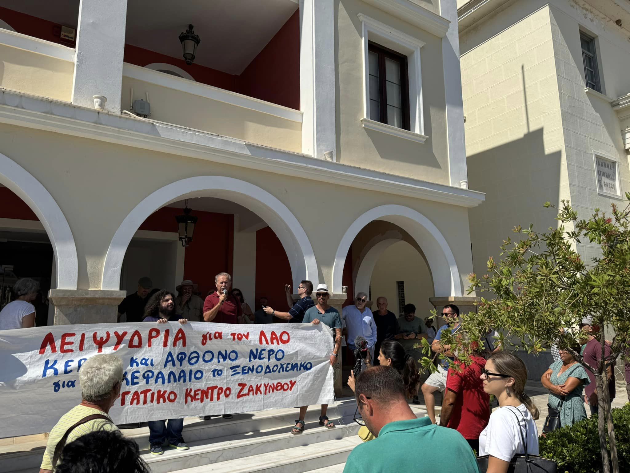- To Σάββατο 10 Αυγούστου στις 11 το πρωί έξω από το Δημαρχείο Ζακύνθου πραγματοποιήθηκε παράσταση διαμαρτυρίας για το νερό – «Δυναμώνουμε τον αγώνα για φθηνό, ποιοτικό νερό, έργα υποδομής»
