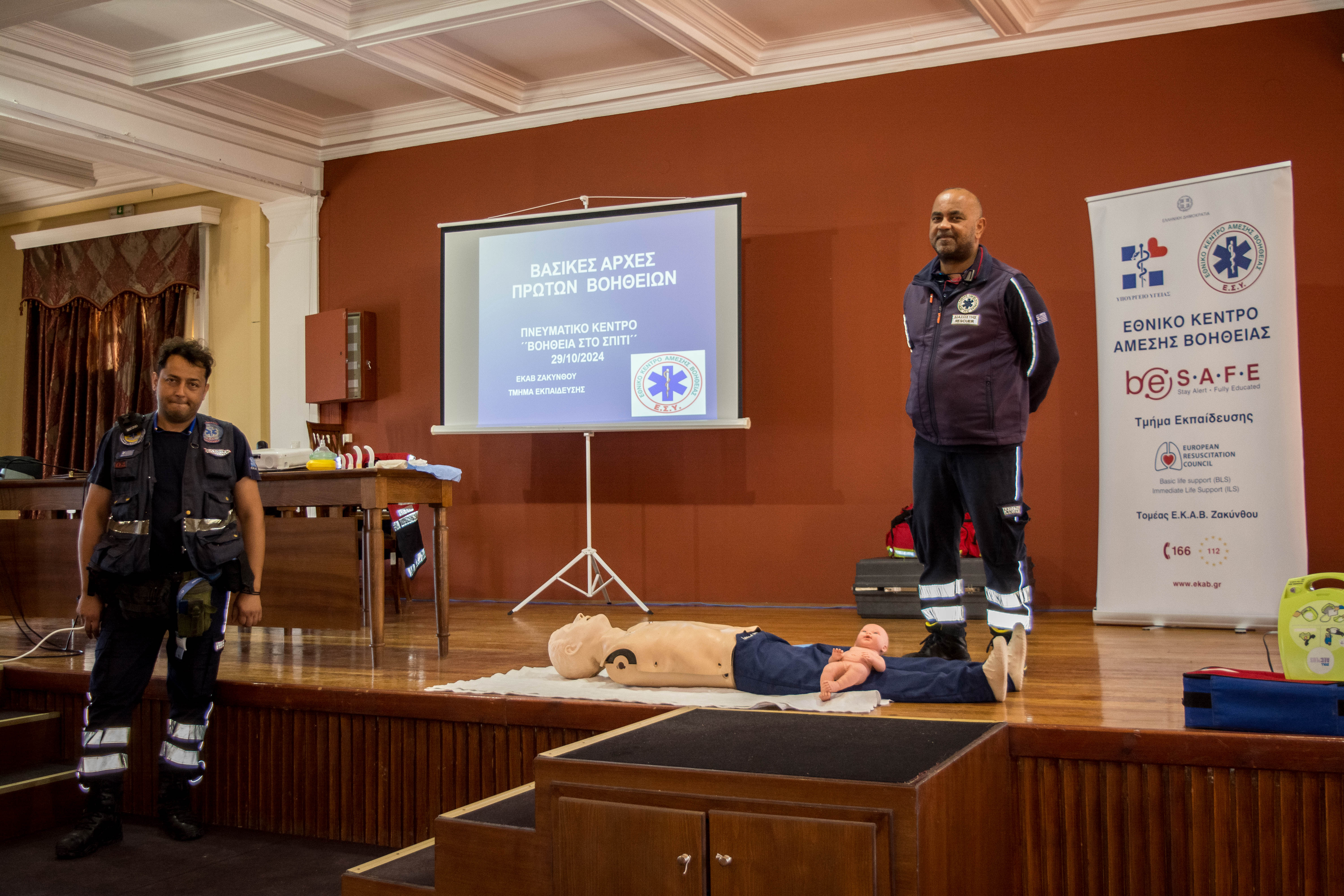 Ο Δήμος Ζακύνθου, μέσω της Διεύθυνσης Πρόνοιας και Κοινωνικών Υποθέσεων, πραγματοποίησε την Τρίτη 29 Οκτωβρίου 2024, στο Πνευματικό Κέντρο, ένα ολοκληρωμένο υπηρεσιακό σεμινάριο πρώτων βοηθειών και καρδιοπνευμονικής αναζωογόνησης (ΚΑΡΠΑ). - ΔΕΛΤΙΟ ΤΥΠΟΥ