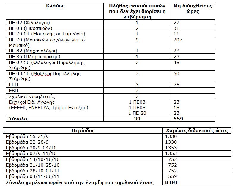 «8.181 χαμένες διδακτικές ώρες για τους μαθητές μας από την αρχή της χρονιάς»