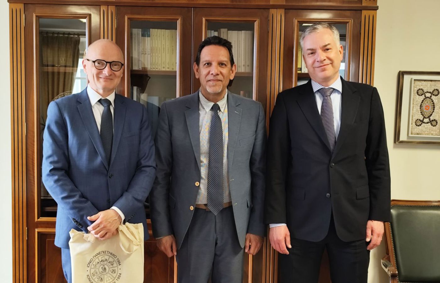 *Λεζάντα φωτογραφίας: (από αριστερά προς τα δεξιά): Ο Πρέσβης της Ομοσπονδιακής Δημοκρατίας της Γερμανίας στην Αθήνα, κ. Andreas Kindl, ο Πρύτανης του Ιονίου Παν/μίου Καθ. Ανδρέας Φλώρος και ο Επίτιμος Πρόξενος της ΟΔΓ κ. Christian Meier