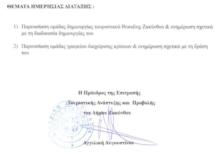 - Παρουσίαση ομάδας δημιουργίας τουριστικού Branding Ζακύνθου και ενημέρωση σχετικά με τη διαδικασία δημιουργίας του