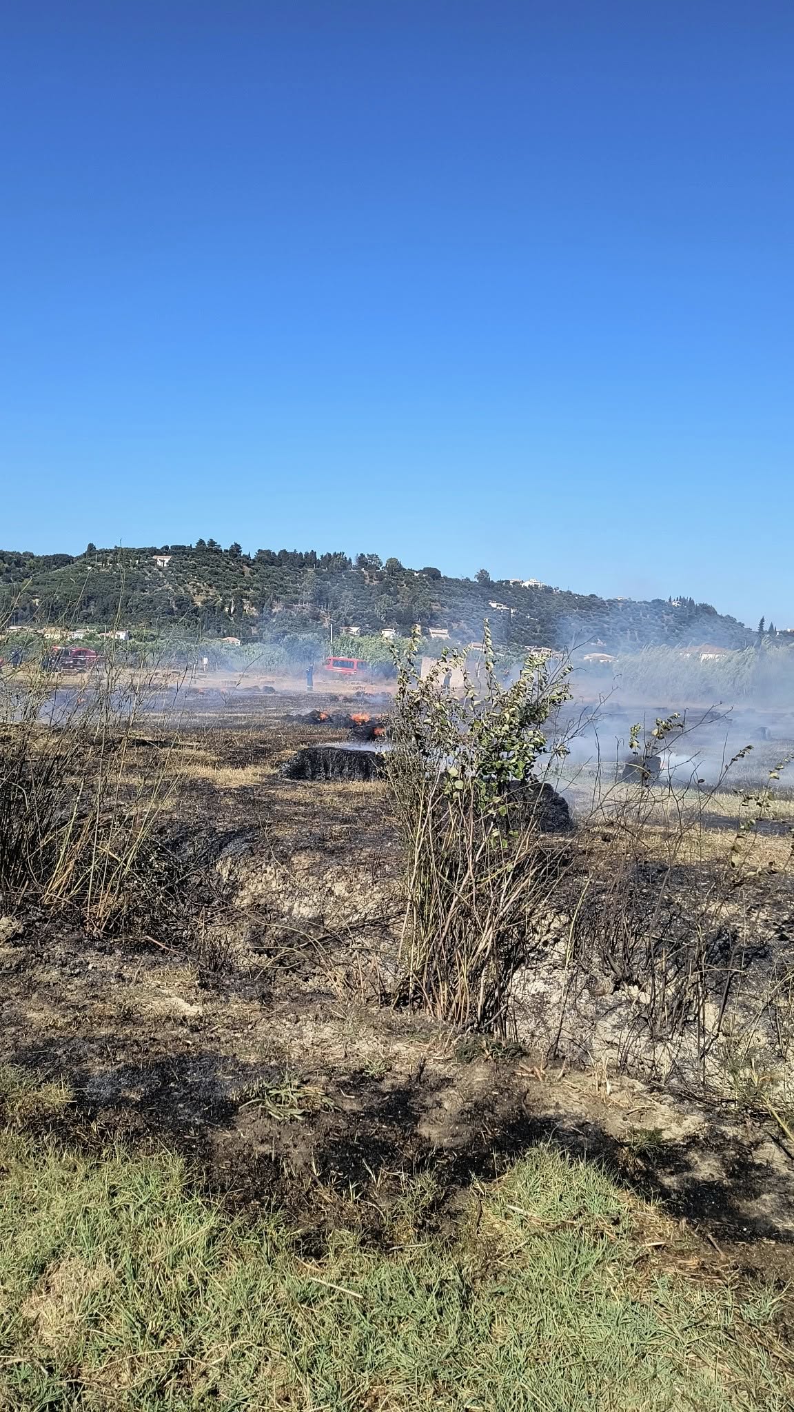 Η φωτιά καίει μπάλες από σανό, δεν υπάρχει λόγος ανησυχίας.