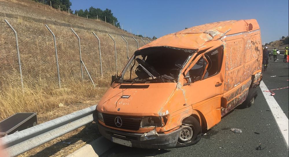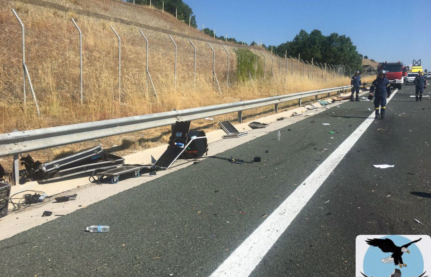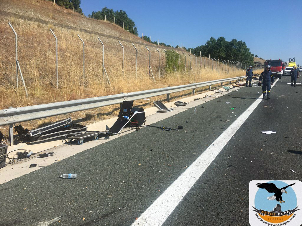 Το δυστύχημα συνέβη όταν ένα βαν, το οποίο μετέφερε επαγγελματικό ηχητικό εξοπλισμό, εξετράπη της πορείας του λίγο πριν την περιοχή «Στράτα» και προσέκρουσε στις προστατευτικές μπαριέρες. Στο οδόστρωμα είναι εμφανή σημάδια φρεναρίσματος, όμως δεν είναι σαφές αν προέρχονται από το βαν.
