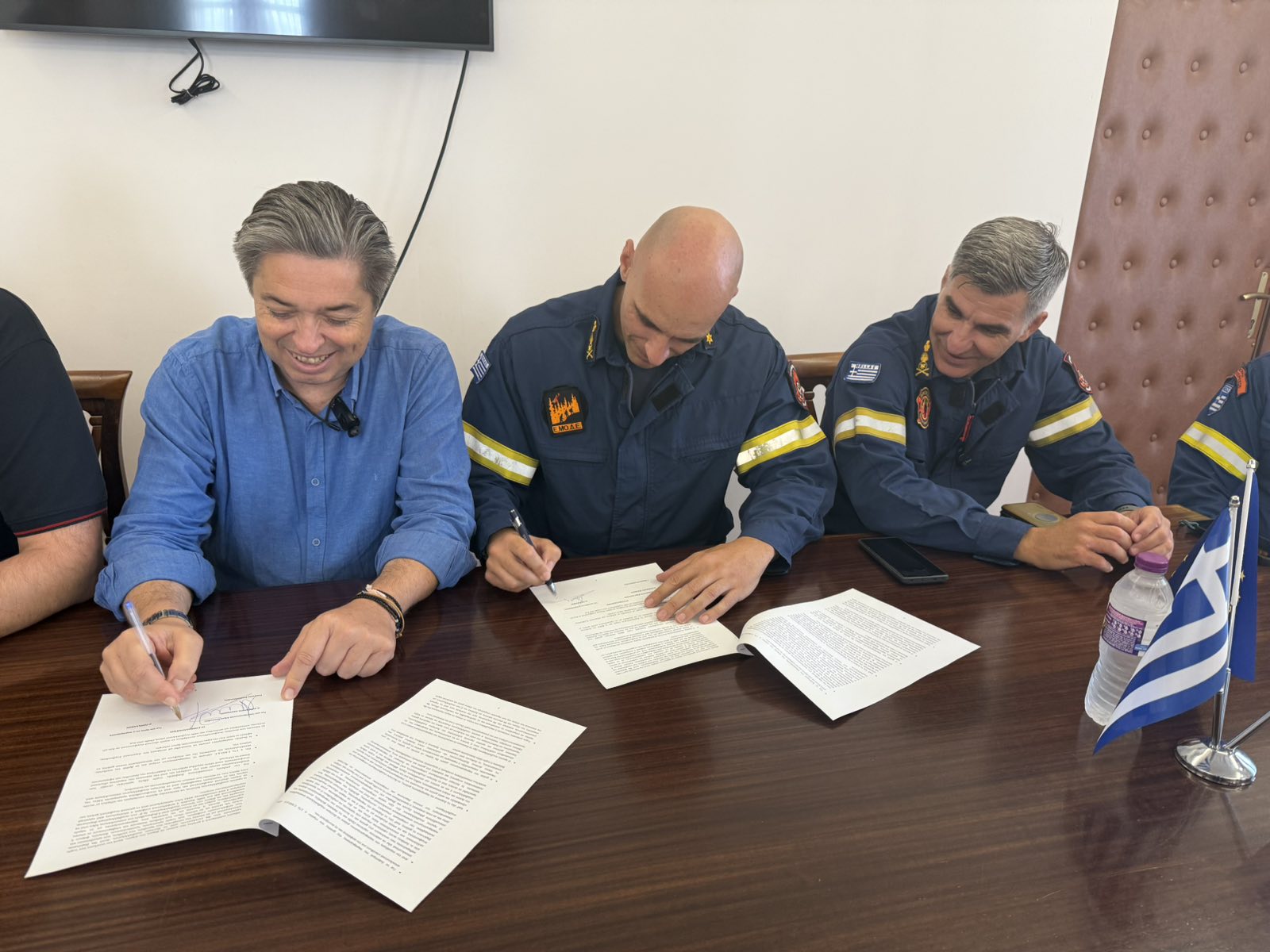 Το σχετικό συμφωνητικό υπεγράφη μεταξύ του Δημάρχου Ζακύνθου, Γιωργου Στασινόπουλου, και του Διοικητή της 17ης Ε.ΜΟ.Δ.Ε., Επιπυραγού Λεωνίδα Σπανού, παρουσία του Βουλευτη Ζακύνθου Διονυση Ακτύπη, του Διοικητή Πυροσβεστικών Υπηρεσιών Πυραρχου Καϊαφα Δημήτρη, του Διοικητη Πυροσβεστικής Υπηρεσίας Αντιπύραρχου Γιαννόπουλου Βασίλη και στελεχων των Πυροσβεστικών Υπηρεσιών.