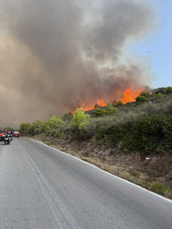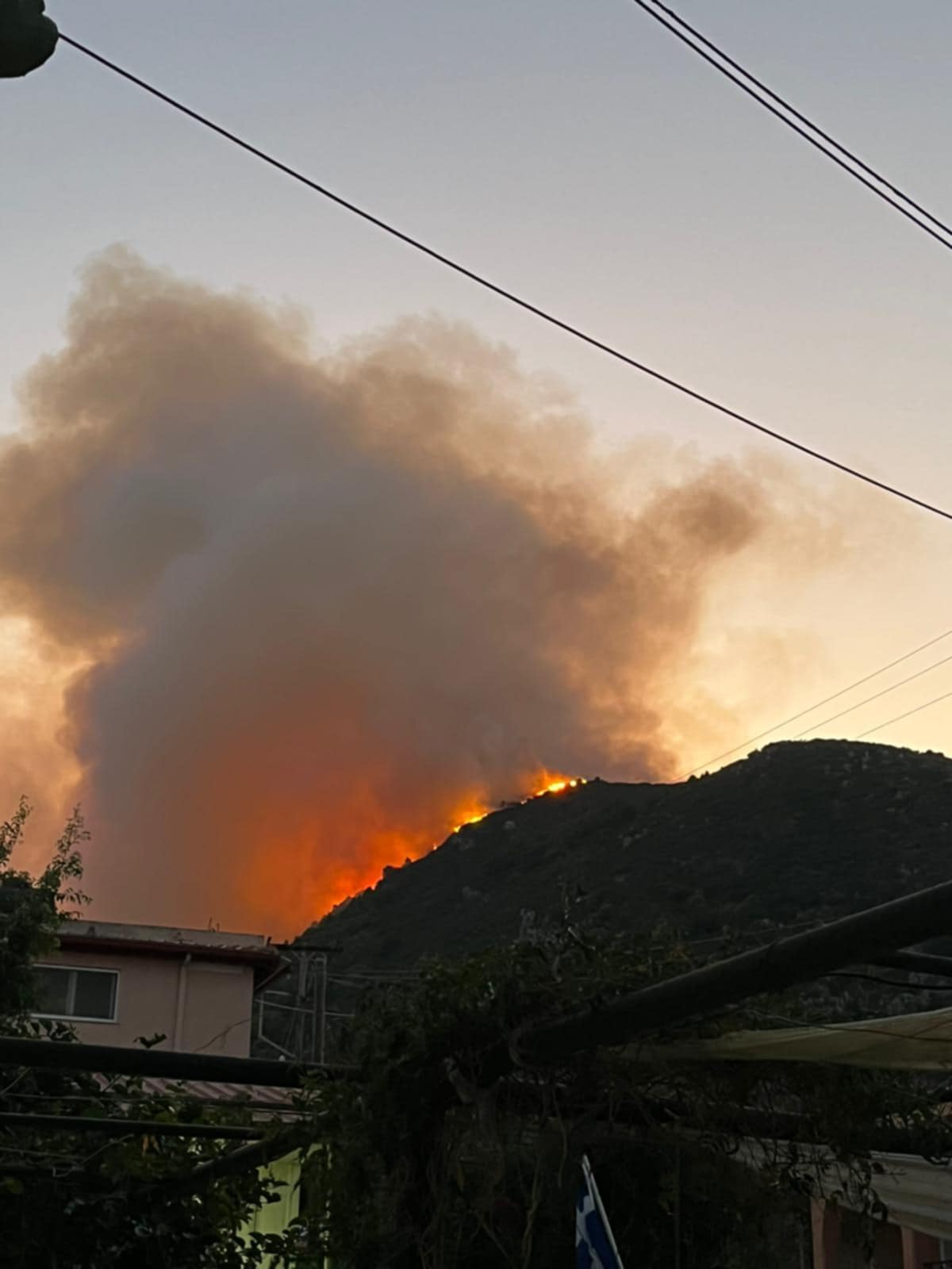 · «Αυτή τη στιγμή το μέτωπο είναι στη Λιθακιά, στο νταμάρι και δυστυχώς κατεβαίνει προς τα κάτω. Οι άνεμοι έχουν πέσει ευτυχώς. Πέρασε μέσα από το χωριό του Αγαλά , δεν μπορούσε να ελεχθεί η φωτιά, το κύριο ήταν να σωθούν κατοικίες τουλάχιστον. Στη Λιθακιά κατεβαίνει προς Παντοκράτορα και το κακό σενάριο είναι τη νύχτα να φτάσει προς Μουζάκι. Είναι όλα πιθανά. Μπορεί ξαφνικά να έχουμε αέρα και δεν ξέρουμε πως θα είναι η νύχτα. Περιμένουμε…»