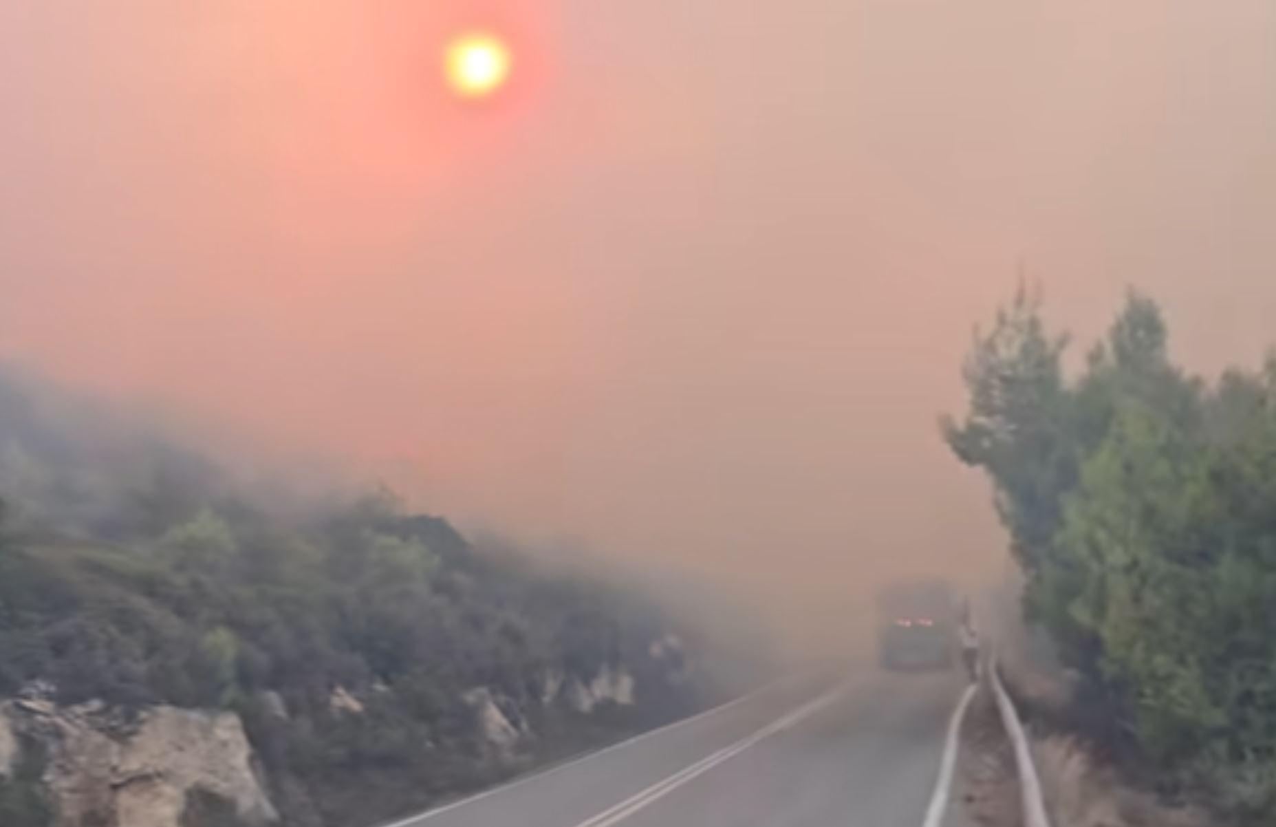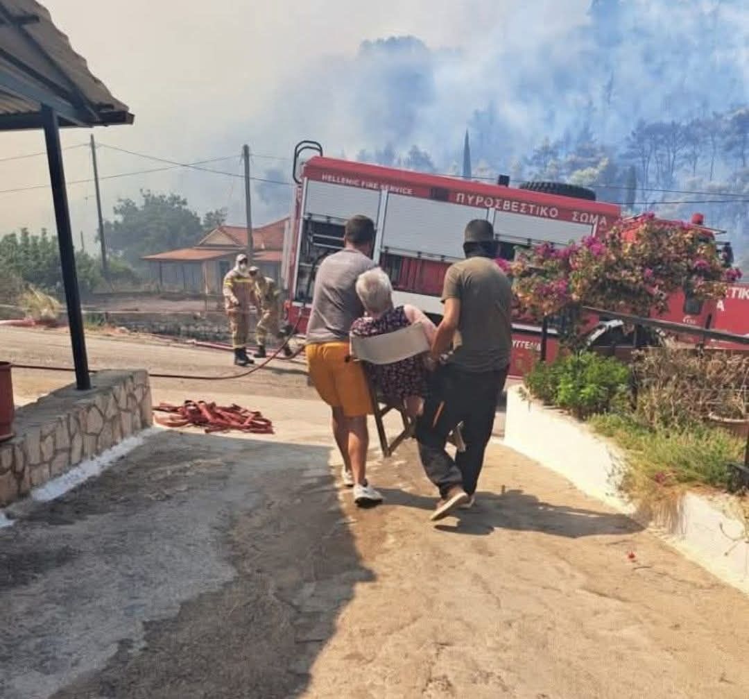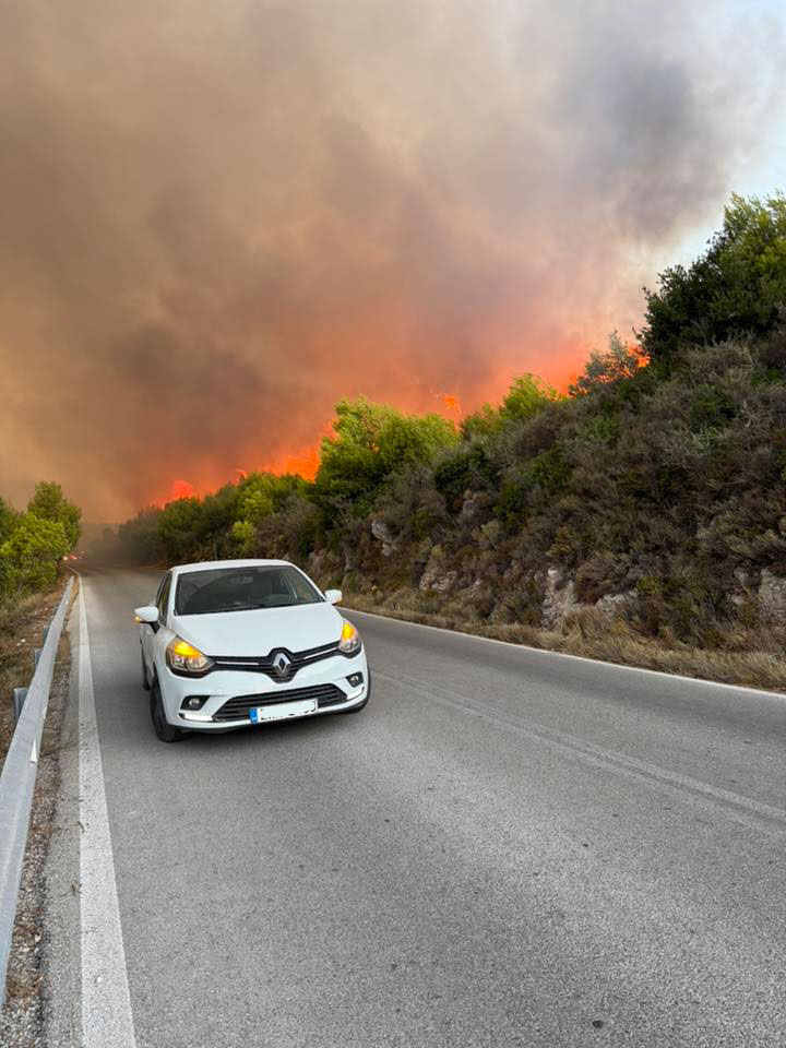 · «Είμαι μαζί με τους συνεργάτες μου λίγο πριν μπούμε στο Kερί, …Όλη τη μέρα ήμασταν στον Αγαλά και στον Κοιλιωμένο. Η κατάσταση είναι εφιαλτική, τα μέτωπα πάρα πολλά, ο Αγαλάς πληγώθηκε πολύ σήμερα. Είναι κρανίου τόπος, τα πάντα έχουν καεί, οι φλόγες αγκάλιασαν και άγγιξαν τα σπίτια του χωριού. Έχουμε 2 κατοικίες και το εστιατόριο στη Σπηλιά του Δαμιανού, που κάηκαν. Υπάρχουν και άλλες μικροκαταστροφές. Ήταν τέτοιο το μένος και η ένταση της φωτιάς, που για κάποιες ώρες κανείς δεν μπορούσε να κάνει τίποτα. Παρόλο που ήμασταν όλοι εκεί, πραγματικά για κάποιες ώρες η κατάσταση ήταν τρομερή, η φωτιά πήγαινε από το ένα χωριό στο άλλο. Ηχούσε το 112 για αλλαγή των δρόμων διαφυγής συνέχεια. Μέχρι στιγμής έχουν καεί περίπου 15 χιλιάδες στρέμματα. Θα πετάξουμε και το drones γιατί θέλουμε να δούμε κάποια στοιχεία. ΄Οσο αφορά τις εκκενώσεις που ζητήθηκαν από την Πυροσβεστική, εκκενώθηκε και ο Αγαλάς και το Κερί αλλά και 2 ξενοδοχεία . Στο ένα βγάλαμε 50 άτομα που ήταν εγκλωβισμένα πολύ γρήγορα. Το ξενοδοχείο το είχαν ζώσει οι φλόγες, ανοίξαμε δασικά δρόμο με μηχάνημα, ώστε να περνάει και το λεωφορείο και με τη συνοδεία αστυνομίας και πυροσβεστικής τους βγάλαμε. Για άλλη μια φορά δεν ήταν συνεργάσιμοι πολλοί από αυτούς, κάποιοι κινδύνεψαν να καούν, τους βγάζαμε, ξαναγύριζαν και αναγκαστήκαμε πόρτα-πόρτα, τουλάχιστον ηλικιωμένους και ευπαθείς ομάδες να τους παίρνουμε αγκαλιά για να τους μεταφέρουμε στην πλατεία του χωριού. Εκεί τους βάλαμε σε λεωφορείο και τους μεταφέραμε σε ασφαλή χώρο»