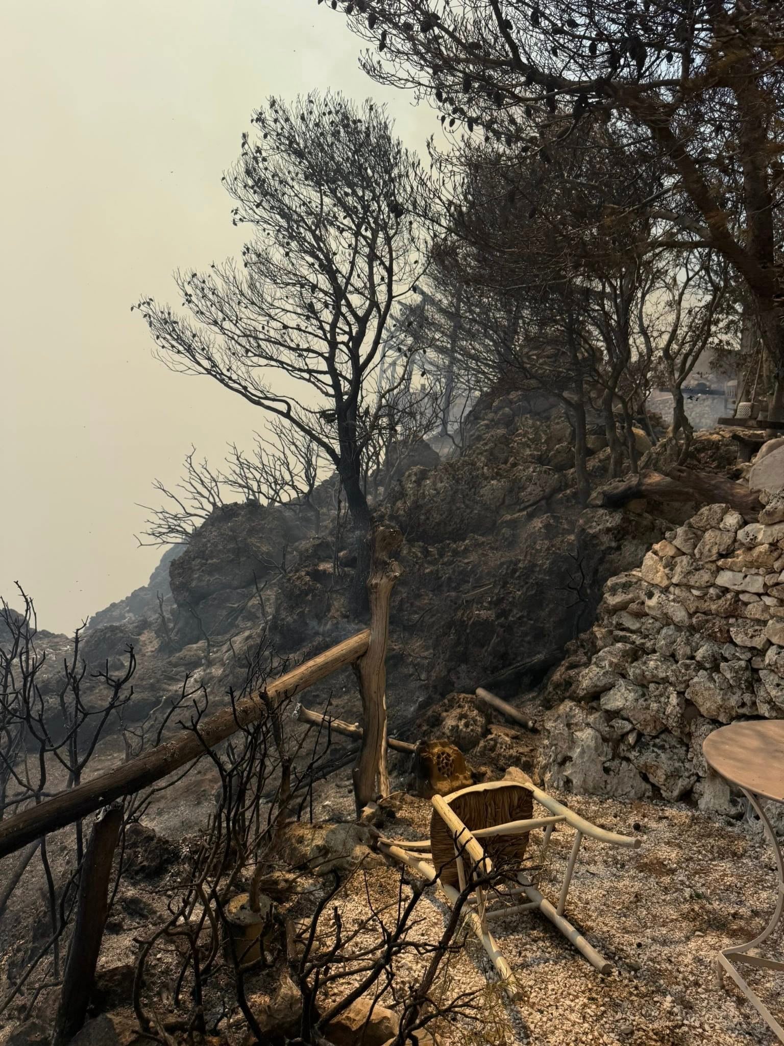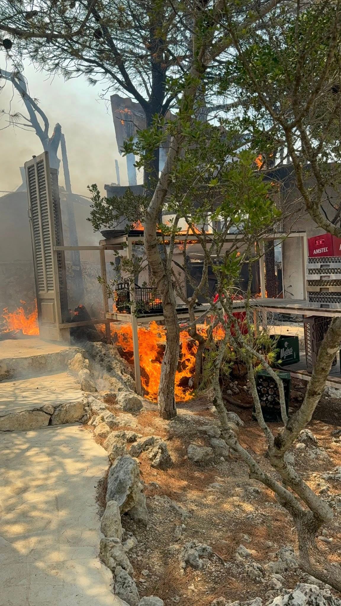 Η φωτιά επεκτάθηκε ραγδαία, με αποτέλεσμα να καταστραφεί ολοσχερώς, αφήνοντας πίσω του στάχτες και αποκαΐδια το ιστορικό εστιατόριο Cave Damianos. To εστιατόριο ήταν κτισμένο επάνω από την ιστορική Σπηλιά του Δαμιανού , σε μια περιοχή με υπέροχη θέα και μοναδικό ηλιοβασίλεμα που αποτελούσε σημείο αναφοράς για τους επισκέπτες αλλά και τους μόνιμους κατοίκους του νησιού.