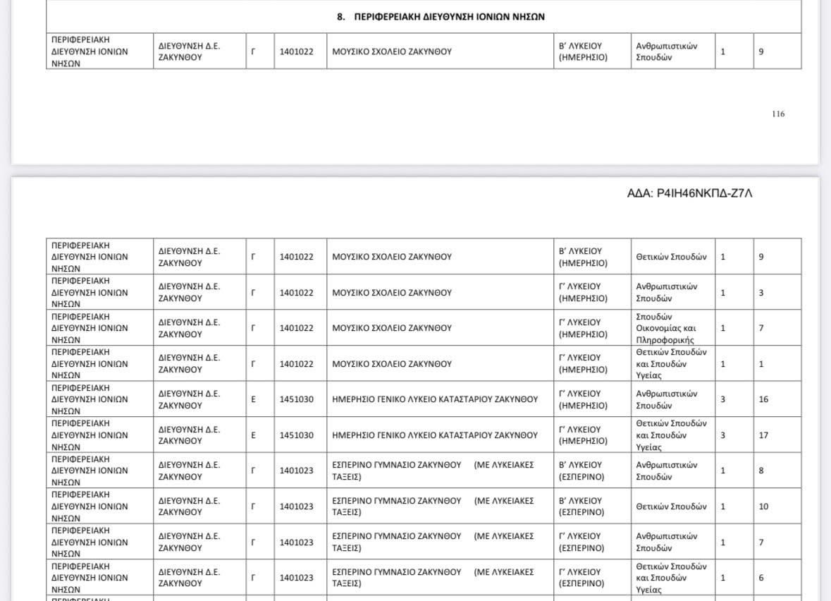 «Κατ’ εξαίρεση λειτουργία ολιγομελών τμημάτων στα Γενικά και Επαγγελματικά Λύκεια της Ζακύνθου για το σχολικό έτος 2025-2026»