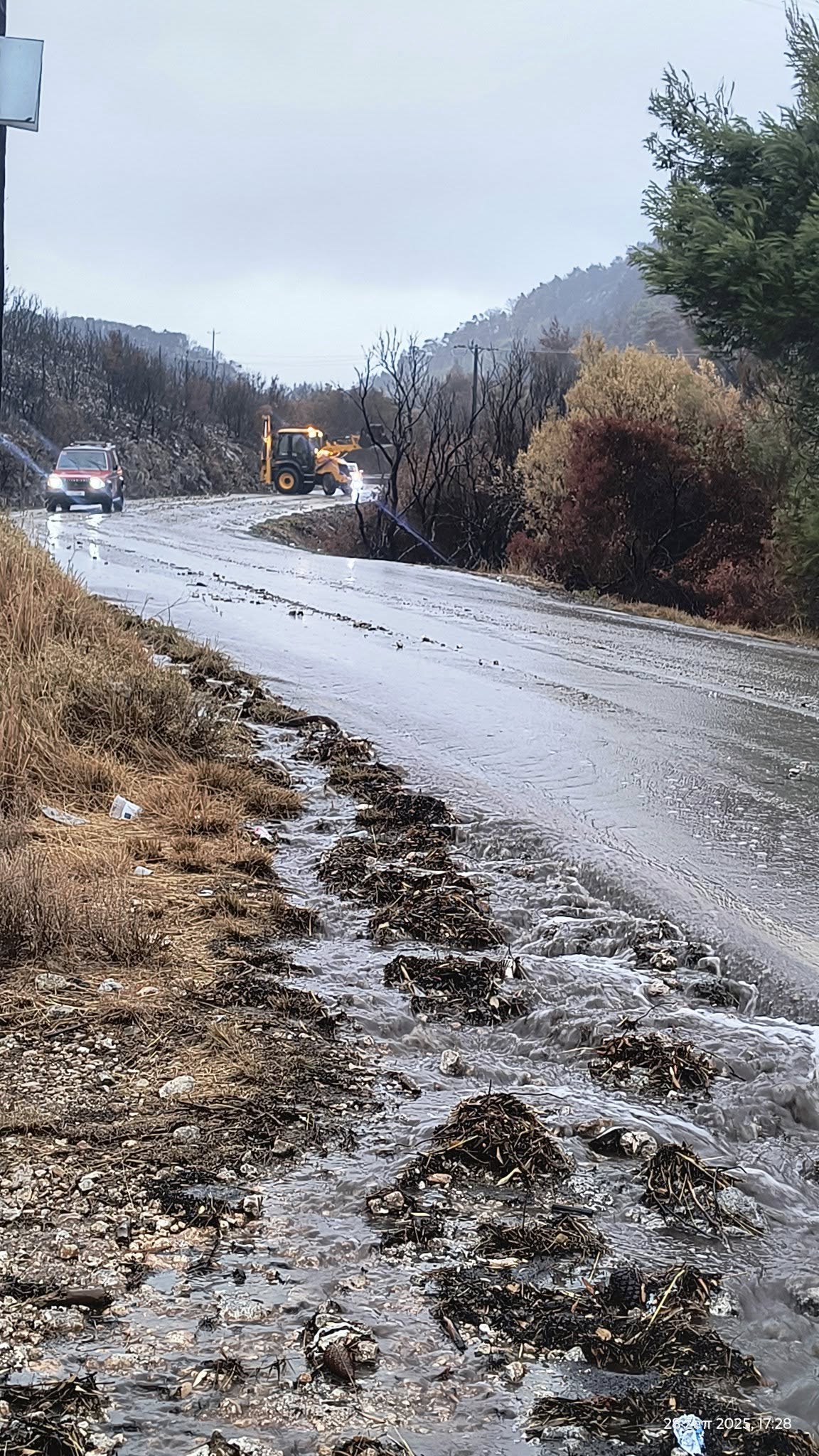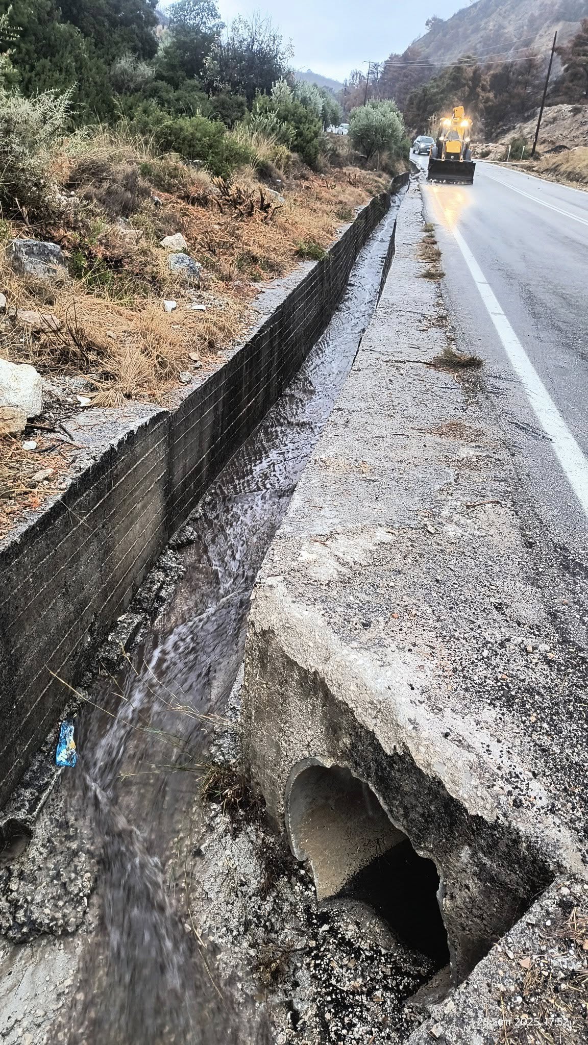 Η έντονη βροχόπτωση έφερε φερτά υλικά στον δρόμο προς Αγαλά, στη Λιθακιά.