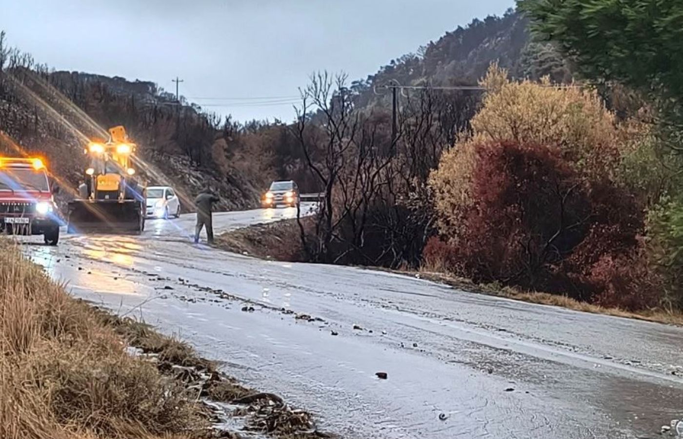 Το οδόστρωμα έχει καλυφθεί από χαλίκια, πέτρες και νερά, δημιουργώντας επικίνδυνες συνθήκες.