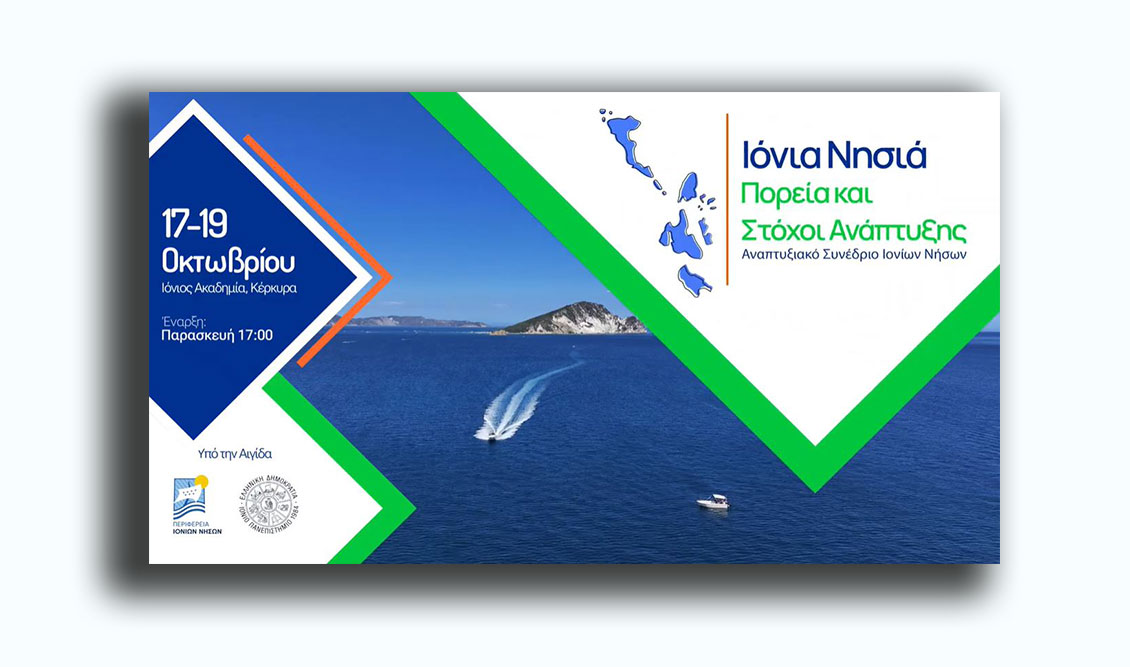 Ξεκίνησε την Παρασκευή 17/10/2025 το Αναπτυξιακό Συνέδριο Ιονίων Νήσων που διοργανώνουν η Περιφέρεια Ιονίων Νήσων, σε συνεργασία με το Ιόνιο Πανεπιστήμιο και με την υποστήριξη του Περιφερειακού Ταμείου Ανάπτυξης, με τίτλο «Ιόνια Νησιά: Πορεία και Στόχοι Ανάπτυξης»