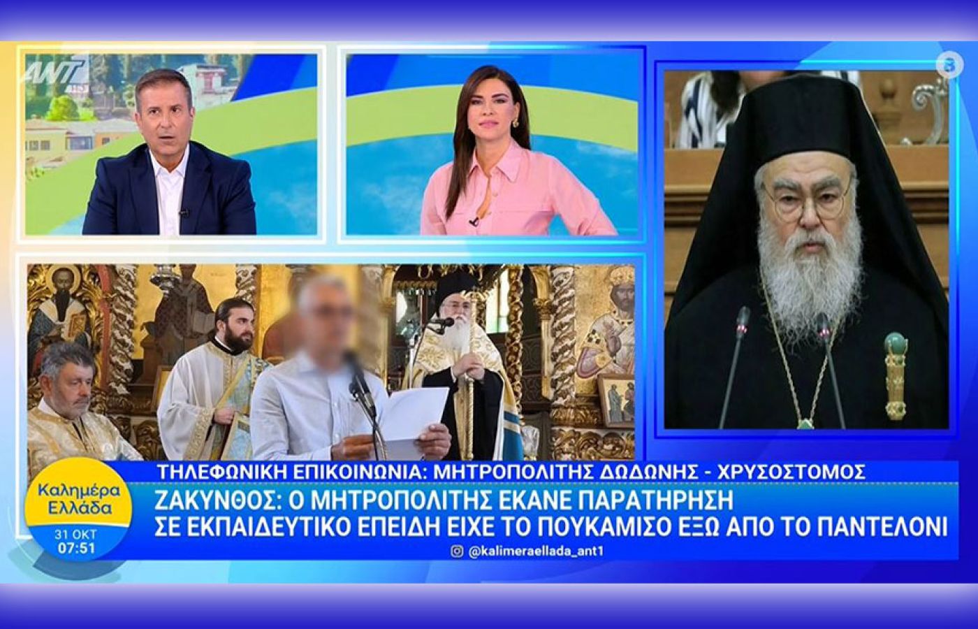 Ο Μητροπολίτης Δωδώνης Χρυσόστομος, μιλώντας στην τηλεόραση του ΑΝΤ1 και στην εκπομπή «Καλημέρα Ελλάδα», για το πολυσυζητημένο περιστατικό με την επίπληξη στον εκπαιδευτικό για την ενδυμασία του, την ώρα που εκφωνούσε τον πανηγυρικό λόγο για την 28η Οκτωβρίου, δήλωσε μεταξύ άλλων, «Μπορεί ένας καθηγητής να πάει στο κέντρο του ναού την ημέρα της εθνικής επετείου με δοξολογία να μιλάει με τα πουκάμισα απ’ έξω;» και συνέχισε λέγοντας «Στην εκκλησία, δυστυχώς, ανεχόμαστε μια κατάσταση τραγική, όσον αφορά το ντύσιμο. Στο Ναό μέσα είναι και άλλοι απρεπώς ενδεδυμένοι και γυναίκες και άντρες και κάνουμε υπομονή»