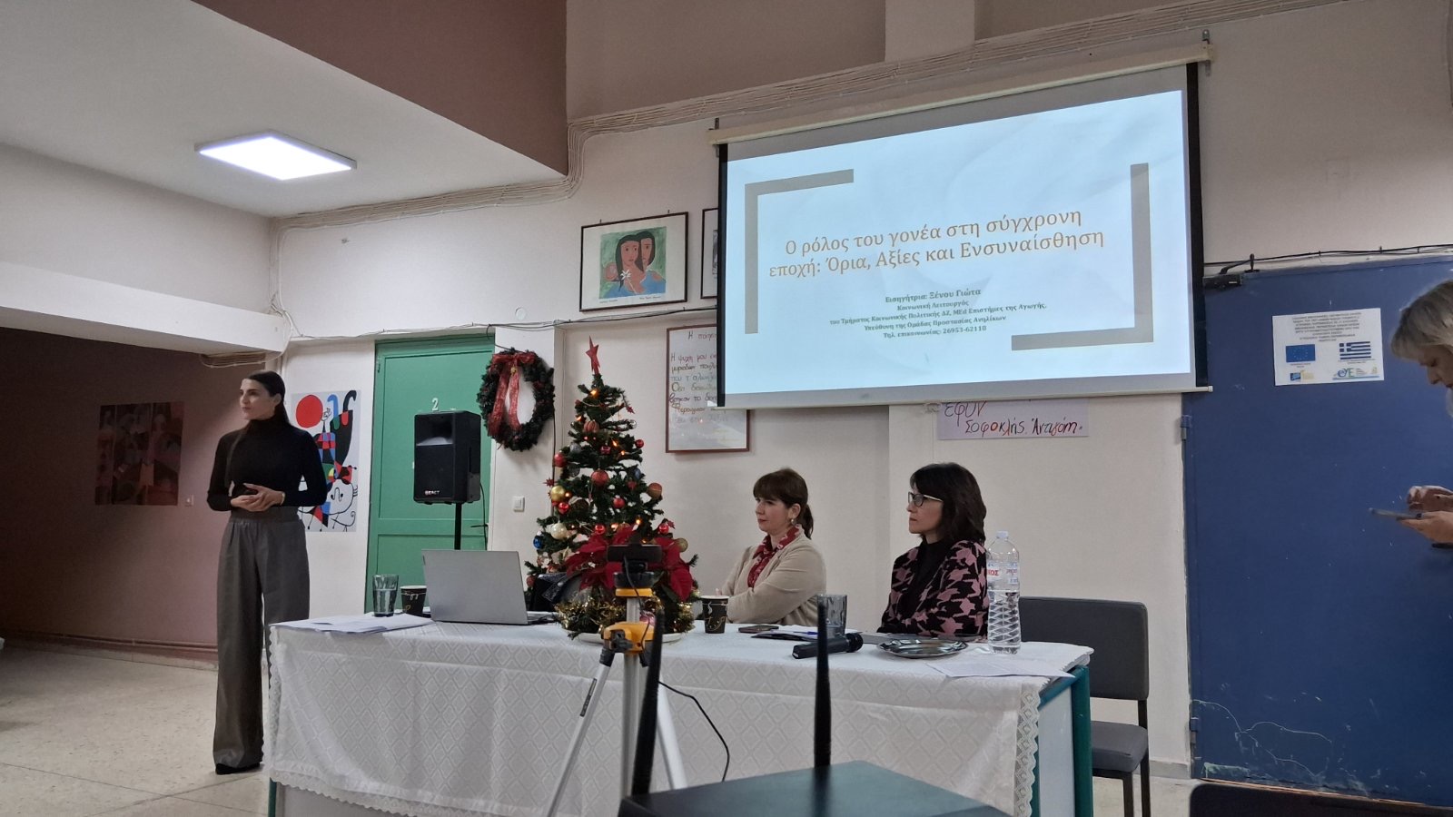 Η εκδήλωση πραγματοποιήθηκε την Τετάρτη 11-12-2025, με στόχο να ενημερώσει και να υποστηρίξει γονείς και κηδεμόνες σχετικά με τη σημαντική τους αποστολή και τις προκλήσεις που αντιμετωπίζουν στην ανατροφή των παιδιών τους.