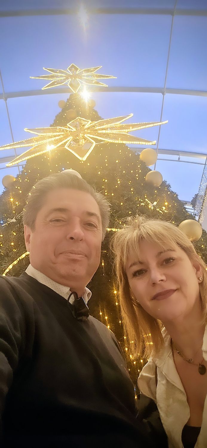 Η ανάρτηση συνοδεύεται από φωτογραφία με τον ίδιο και την σύζυγό του μπροστά από ένα χριστουγεννιάτικο δέντρο.