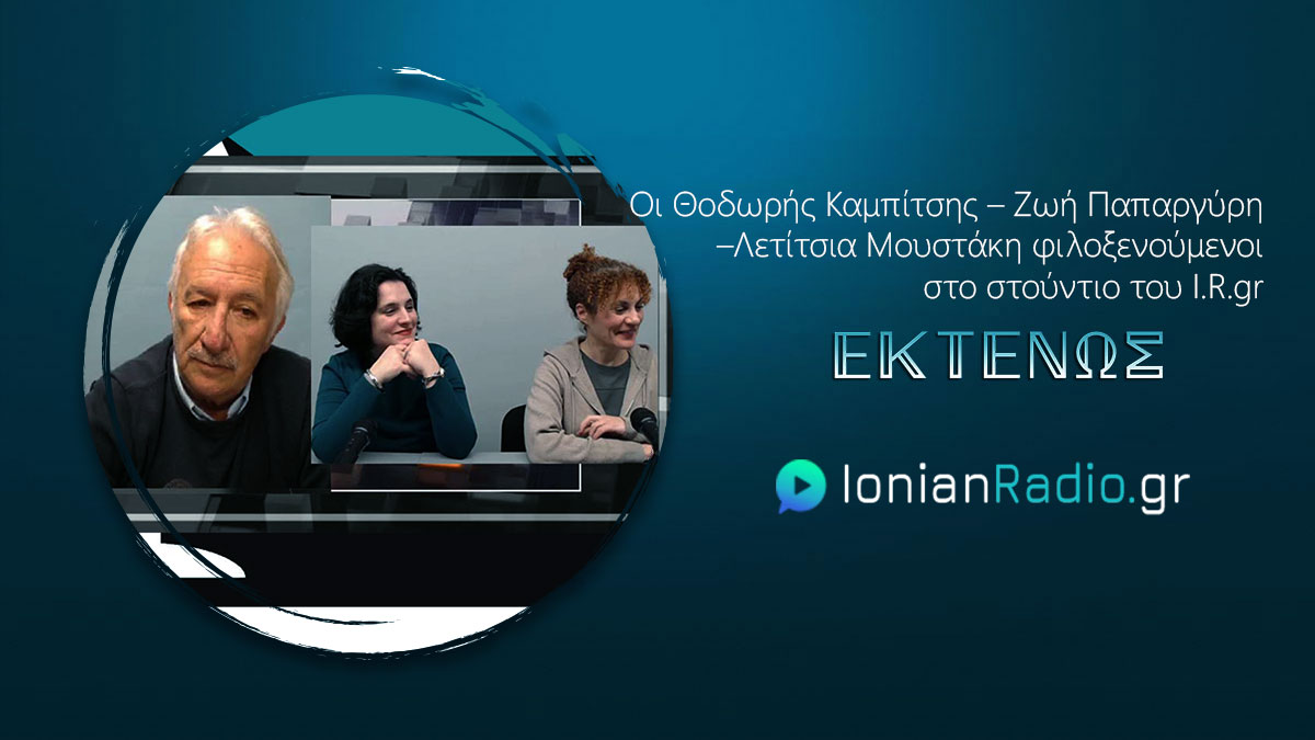 VIDEO: Οι Θοδωρής Καμπίτσης Ζωή Παπαργύρη Λετίτσια Μουστάκη [ΙΟΝΙΟ ΘΕΑΤΡΟ] φιλοξενούμενοι στο στούντιο του Ionian Radio,.gr μιλούν στην εκπομπή ΕΚΤΕΝΩΣ , με το δημοσιογράφο Δημήτρη Τετράδη για την θεατρική παράσταση που έχει πρεμιέρα στις 30/1/2026 στο Δημοτικό Θέατρο Ζακύνθου, Ο ΣΚΑΤΖΟΧΟΙΡΟΣ Ή Η ΚΑΤΕΔΑΦΙΣΗ