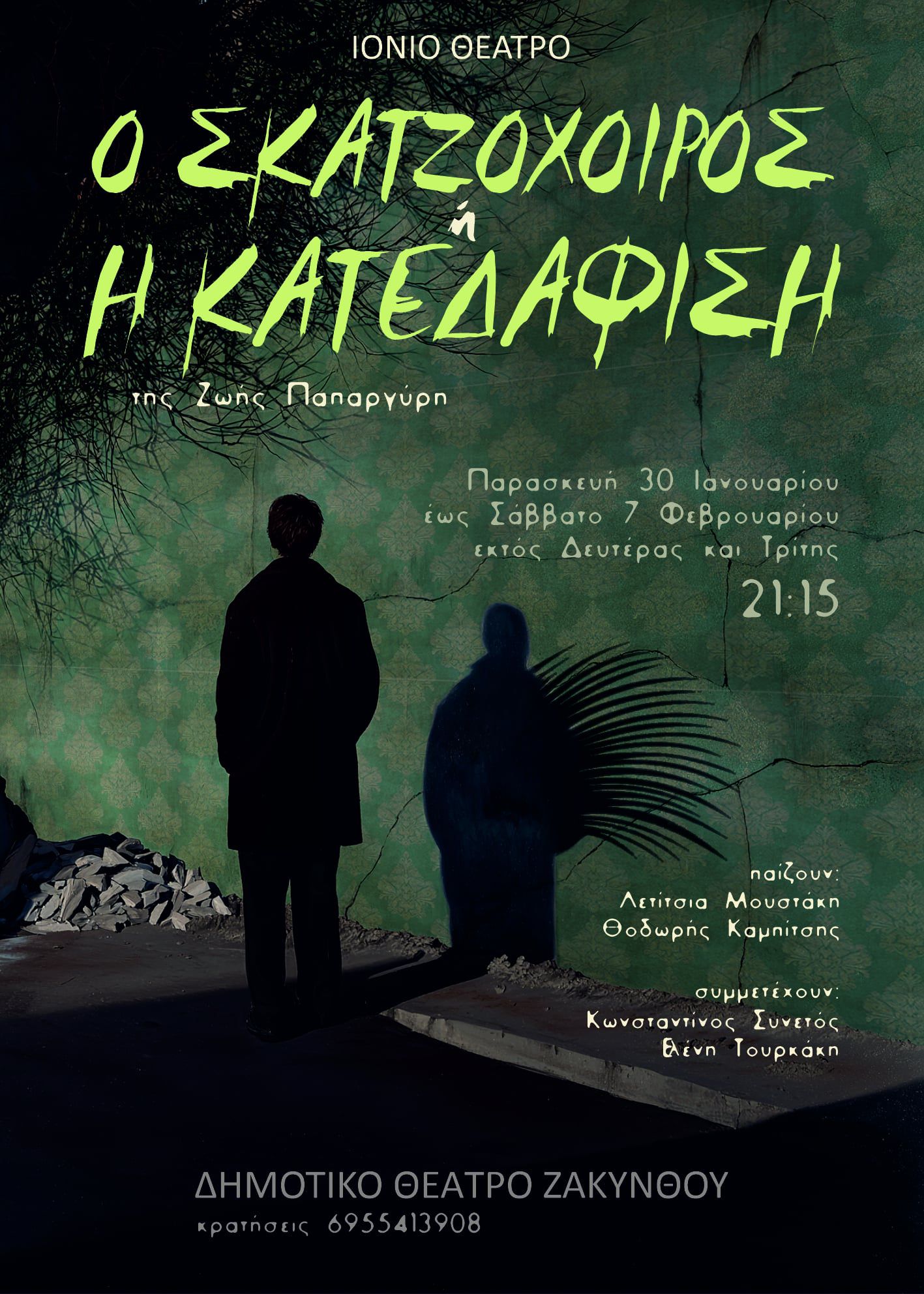 Παρασκευή 30 Ιανουαρίου έως Σάββατο 7 Φεβρουαρίου 2025, εκτός Δευτέρας και Τρίτης, στις 21:15, στο Δημοτικό Θέατρο Ζακύνθου