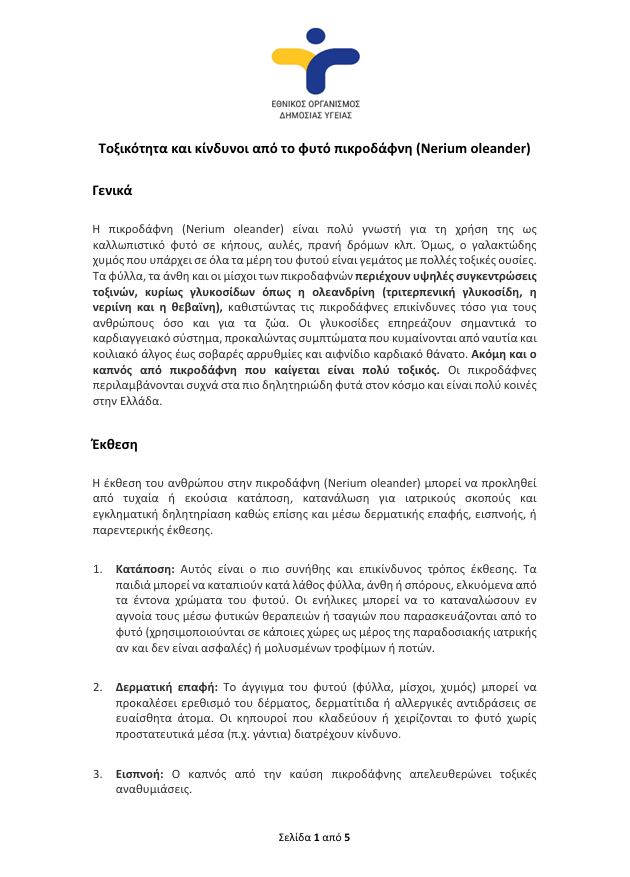 Η πικροδάφνη (επιστημονική ονομασία Nerium oleander) είναι ένα φυτό που συναντάται ευρέως σε μεσογειακές περιοχές, καθώς είναι ιδιαίτερα ανθεκτικό στη ζέστη και την ξηρασία. Για τον λόγο αυτό χρησιμοποιείται συχνά ως καλλωπιστικό φυτό σε κήπους, προαύλιους χώρους, πρανή δρόμων και δημόσιους χώρους πρασίνου. Ωστόσο, πίσω από την αισθητική του εικόνα κρύβεται ένας σημαντικός κίνδυνος: η πικροδάφνη συγκαταλέγεται στα πιο τοξικά καλλωπιστικά φυτά που απαντώνται στη φύση.