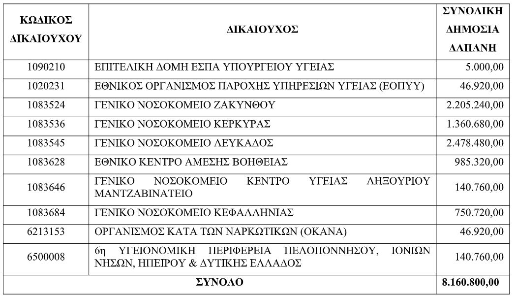 Στις 7/10/2020 η ΠΙΝ δια της περιφερειάρχη χρηματοδότησε μια σειρά φορείς δημόσιας υγείας με το ποσόν των 8.160.800 ευρώ για την πρόσληψη επικουρικού προσωπικού λόγω της πανδημίας του covid-19.