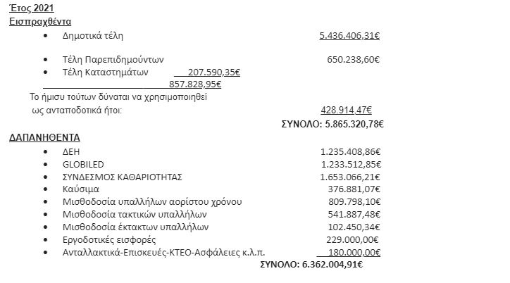 Επειδή σήμερα αναφέρεται σε πρωτοσέλιδο τοπικής εφημερίδας η προτροπή της αντιπολίτευσης στην Δημοτική Αρχή να μειώσει τα δημοτικά τέλη λόγω της οικονομικής κρίσης και λόγω μεγάλης είσπραξης τελών από τον Δημότη δημοσιεύουμε τον πίνακα είσπραξης-δαπάνης των δημοτικών τελών.