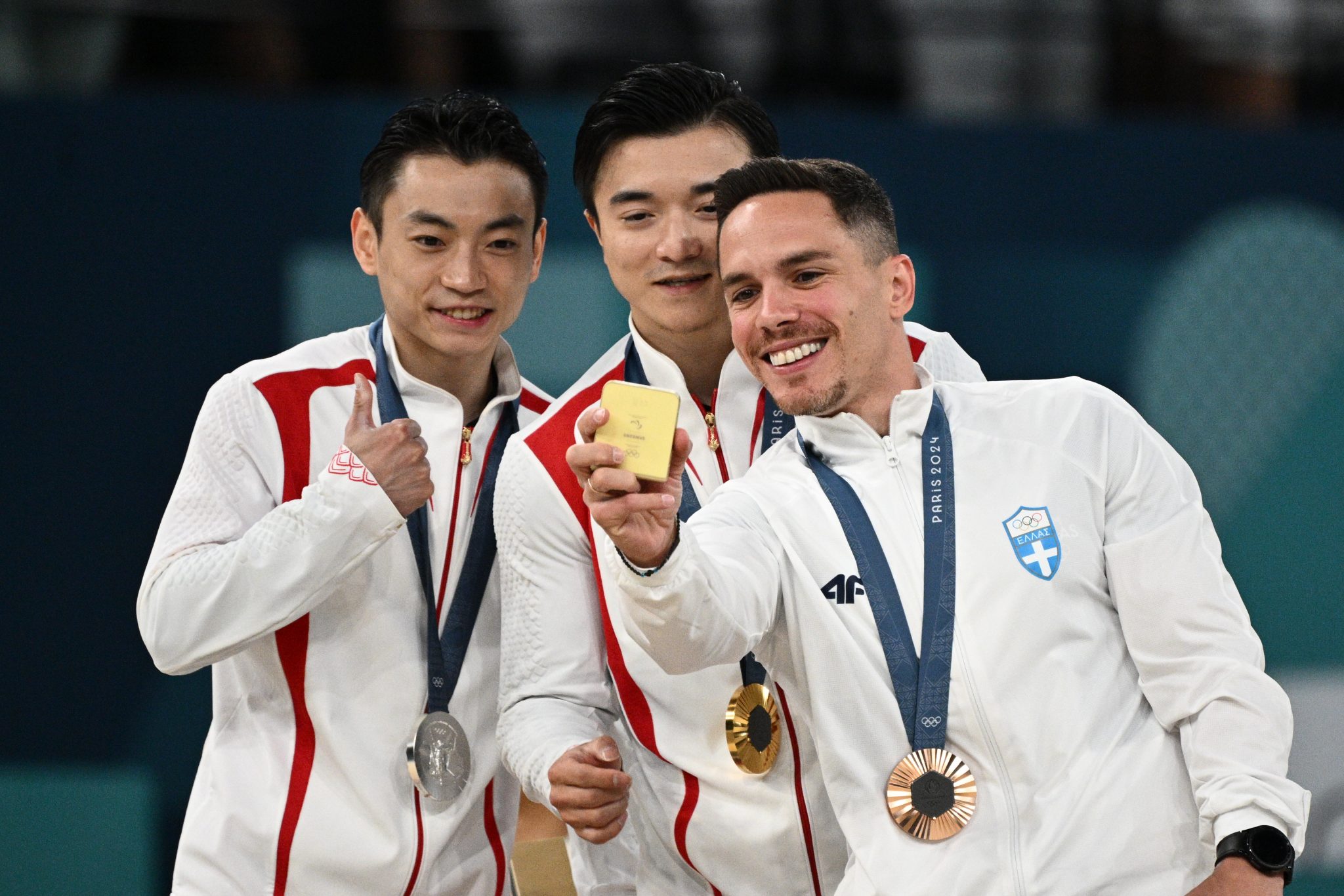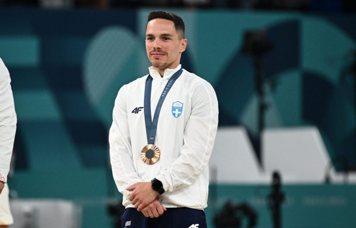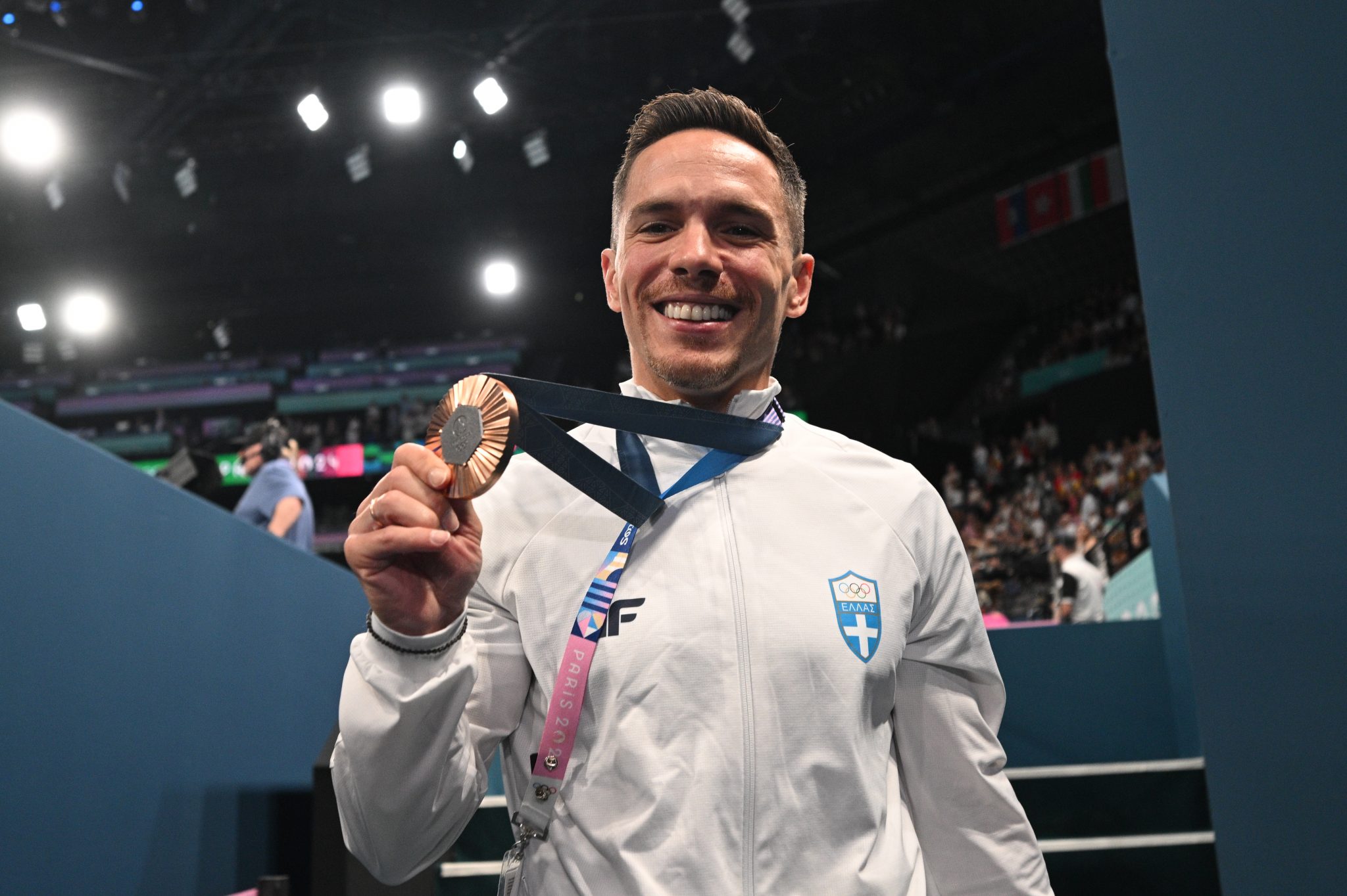 Ο Πετρούνιας, κατακλυσμένος από χαρά και συγκίνηση, ανέβηκε στο βάθρο προσφέροντας στην Ελλάδα μια ακόμα αθλητική επιτυχία στο Παρίσι.