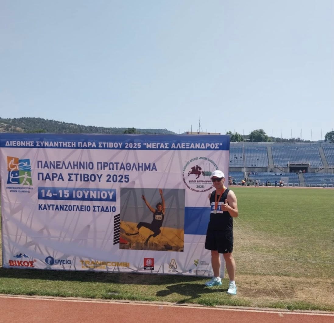 Τo Σάββατο 14 και την Κυριακή 15 Ιουνίου 2025 πραγματοποιήθηκε στο Καυταντζόγλειο Στάδιο στην Θεσσαλονίκη, το Πανελλήνιο Πρωτάθλημα Στίβου Ατόμων με Αναπηρίες, στο οποίο φέτος είχαμε συμμετοχή με πενταμελή αποστολή του Συλλόγου μας, που αποτελούταν από τους αθλητές και τους συνοδούς: τον Παραολυμπιονίκη Αριστοτέλη Μαρίνο στην κατηγορία Τ38, τον Παντή Σταύρο στην κατηγορία Τ12 και τον νέο αθλητή Κεφαλληνό Νικόλαο στην κατηγορία F20 στο αγώνισμα της Σφαίρας, την προπονήτριά τους Λιβέρη Αναστασία και ένα συνοδό.