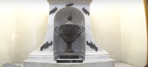 Στο Εθνικό Ιστορικό Μουσείο μεταφέρθηκε το 1933 ώστε να μετατραπεί σε προσκύνημα των νεότερων γενεών, όπως αναφέρει το exploringgreece.tv. Στις πλευρές της λάρνακας είναι χαραγμένα με χρυσά γράμματα τα ονόματα της Χίου και των Ψαρών, του Τσεσμέ και της Αλεξανδρείας. Τόποι που μεγαλούργησε ο ένδοξος θαλασσομάχος.