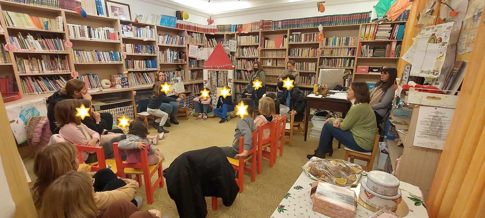 Τα χειροποίητα γλυκά, τα Χριστουγεννιάτικα κάλαντα και το επίκαιρο βιβλίο "Ευχές στον ουρανό " του μέλους του Δ.Σ. κ. Ντένιας Πάτρα, που παρουσιάστηκε στους μικρούς φίλους της Βιβλιοθήκης, έδωσαν χρώμα στη γιορτή.
