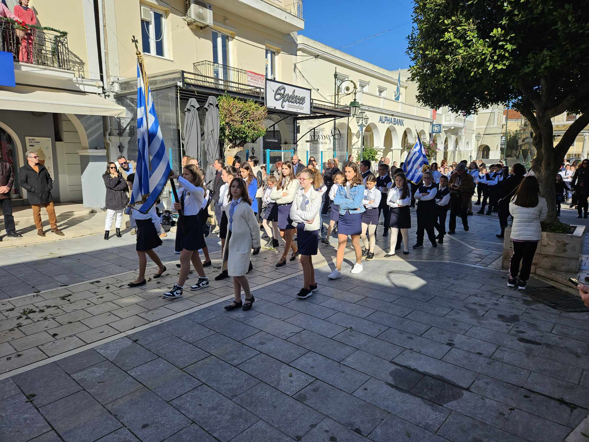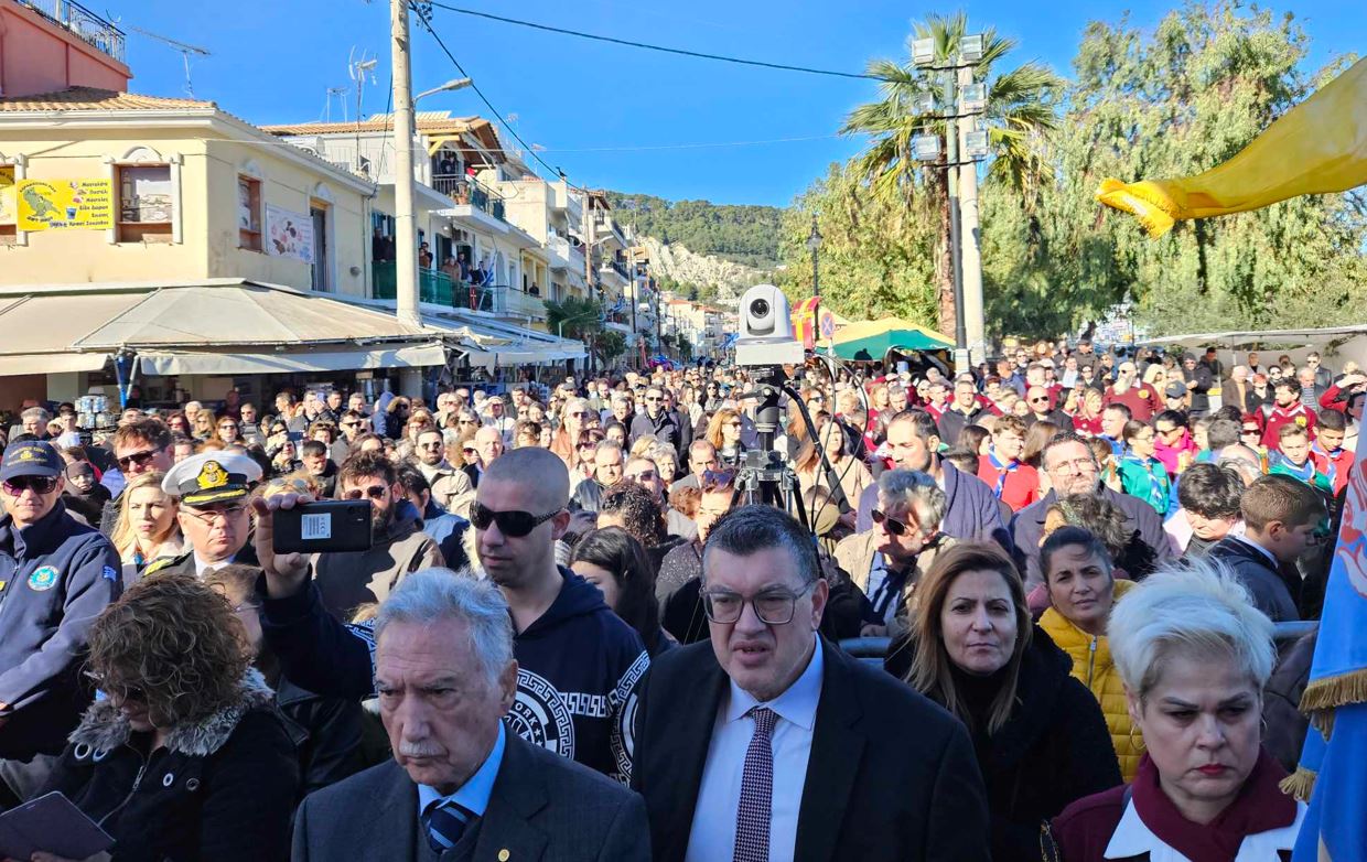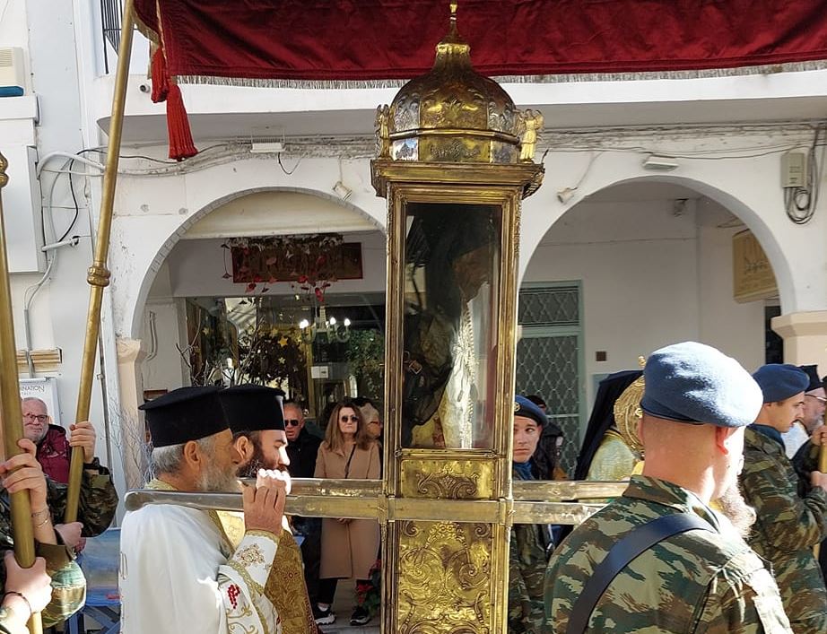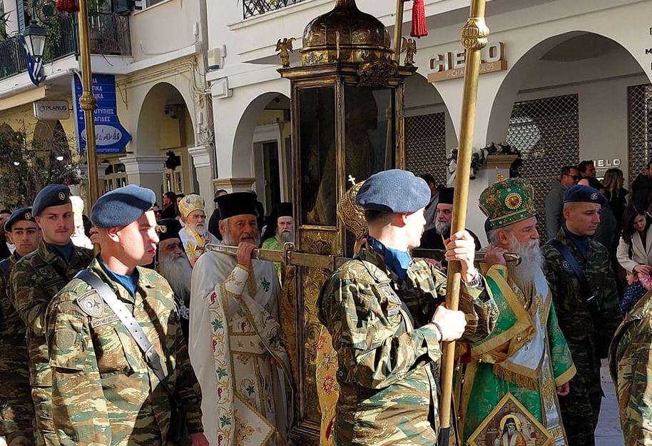 Στις 11:00 το πρωί , και κάτω από τον ηλιόλουστο ουρανό της Ζακύνθου, αλλά με έντονο κρύο, πραγματοποιήθηκε η λιτανεία του Ιερού Σκηνώματος στους δρόμους της πόλης με την συμμετοχή πλήθους κόσμου.